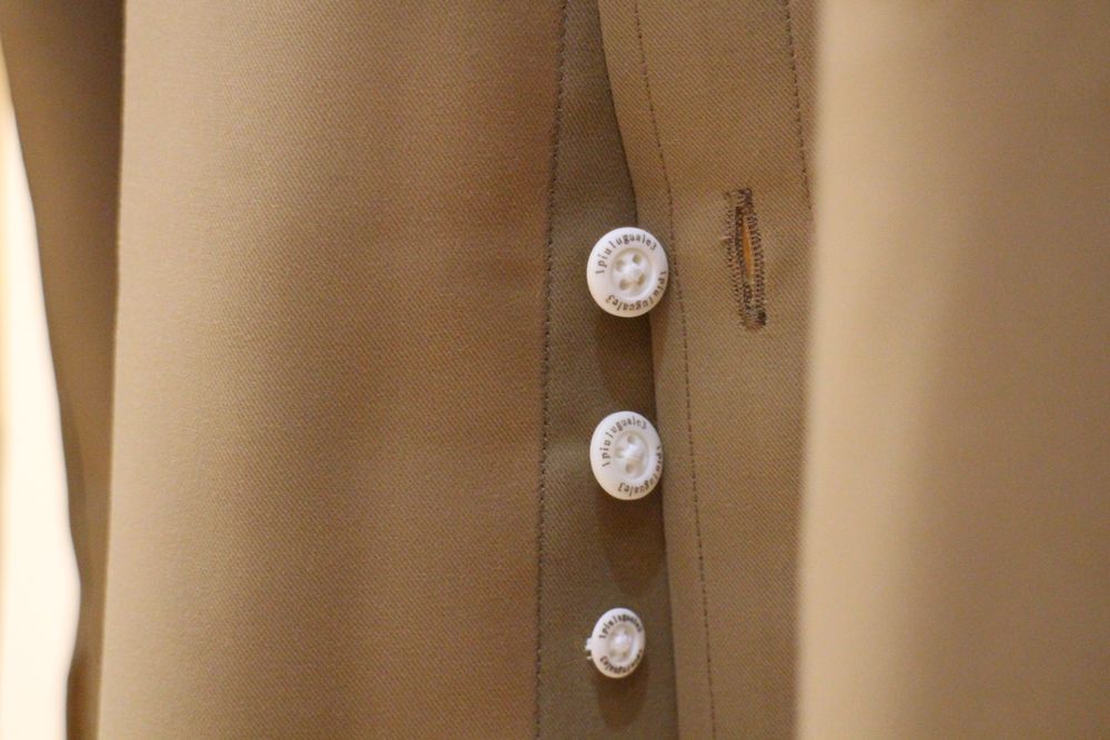 ブランド創設から採用されている三つボタンも特徴のひとつ。
