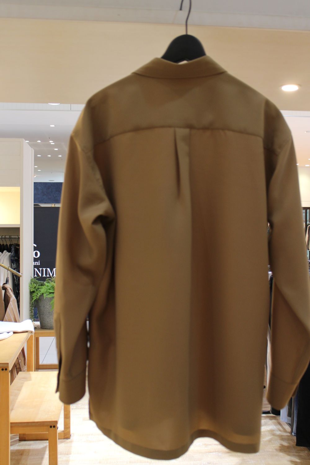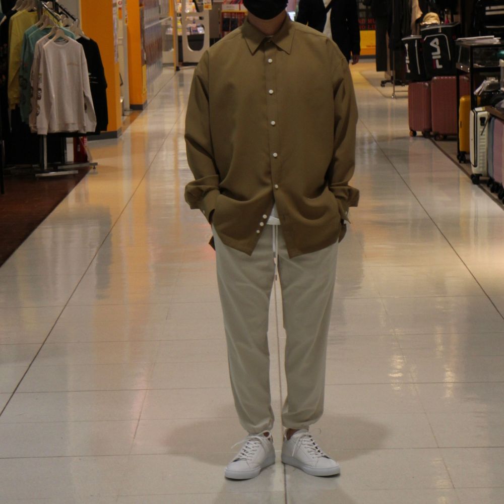 ドロップショルダーで身巾を十分にとったオーバーサイズシャツ。