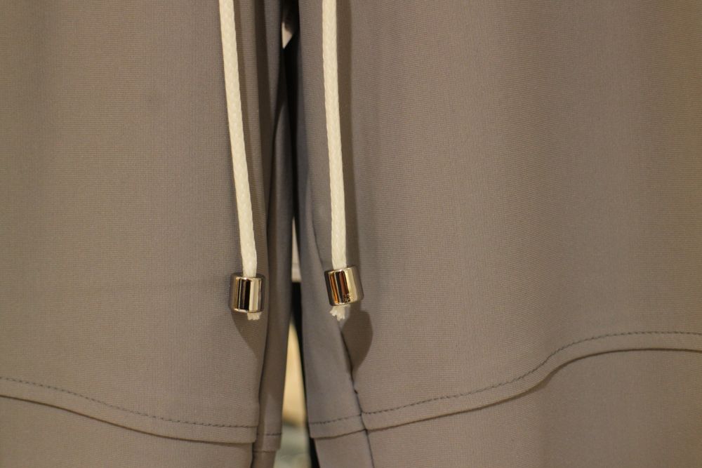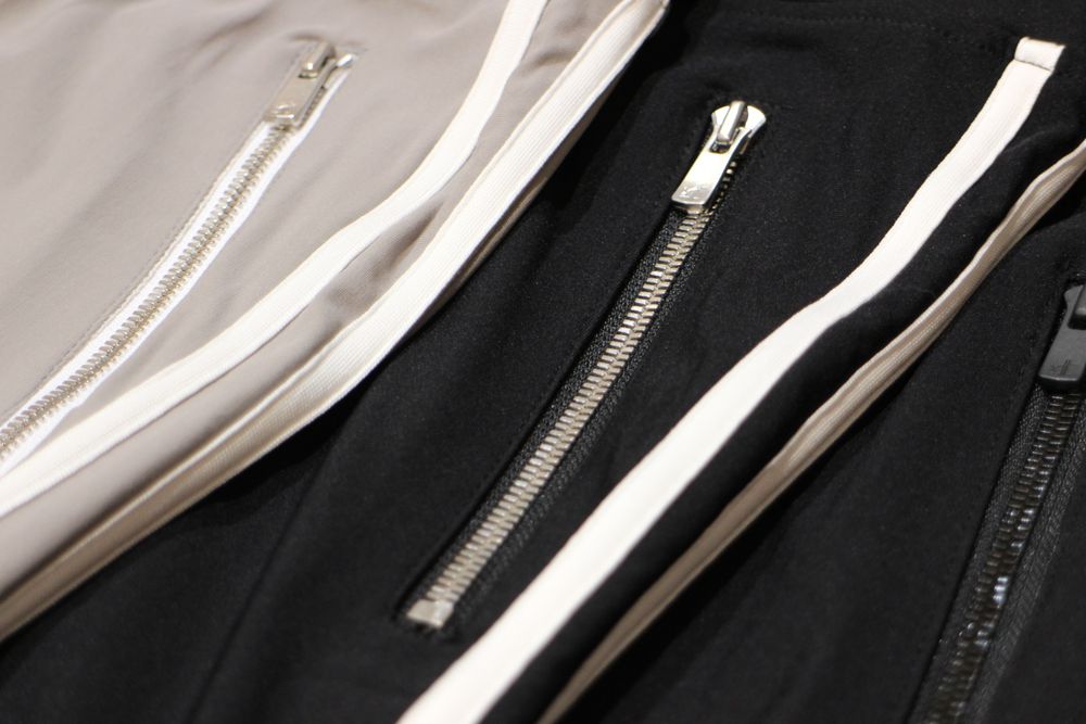 コットンより軽く、そして速乾性を兼ね備えた高機能ナイロンマイクロファイバー。スウェットのような帯にゴムとドローコードを入れスウェット、ジャージ素材を合わせたハイブリットなパンツです。