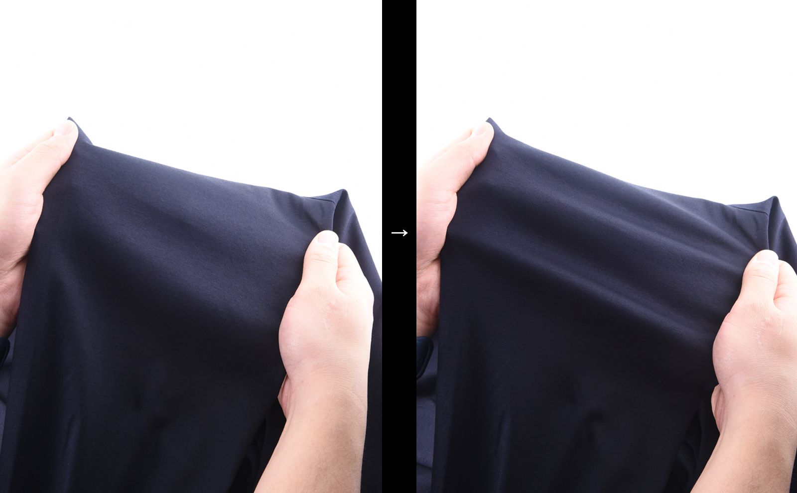 こういった違いは、一度洗濯すると一目瞭然です。 変に引きつったり、歪んだりすることがなく、長く着用できますよ。