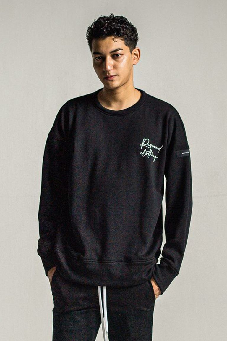 VELOURS FLEECE DORP TRAINER / アイコンロゴ 裏起毛 ルーズトレーナー ブラック