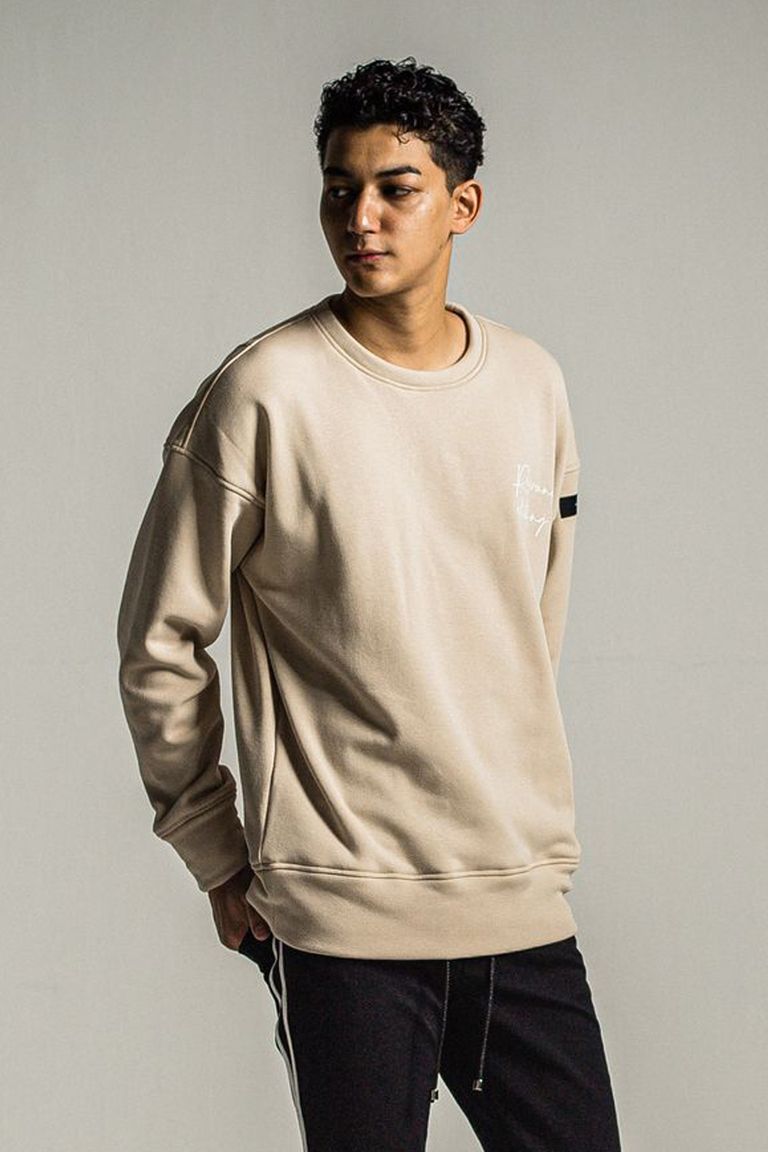 VELOURS FLEECE DORP TRAINER / アイコンロゴ 裏起毛 ルーズトレーナー ベージュ