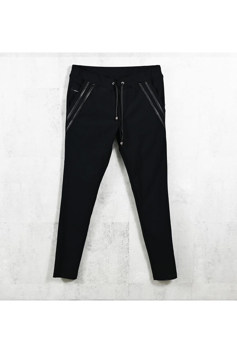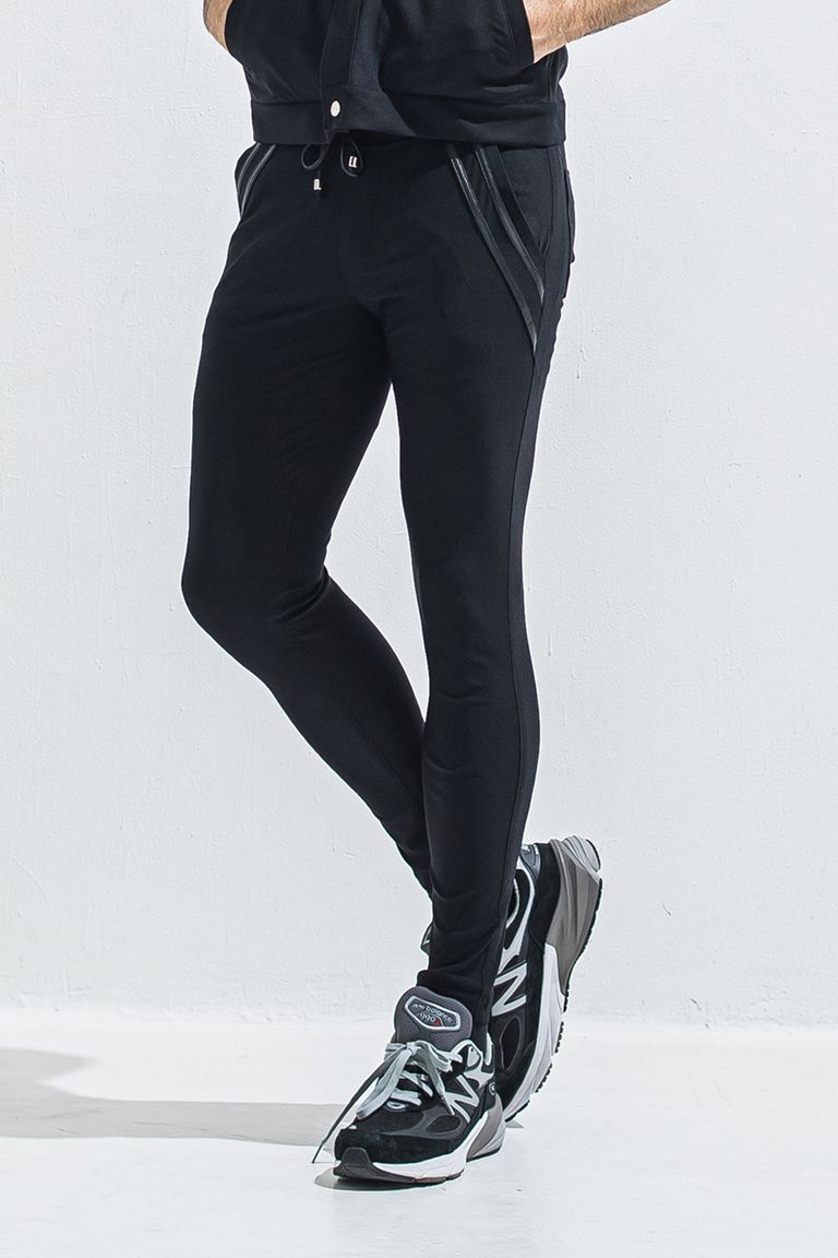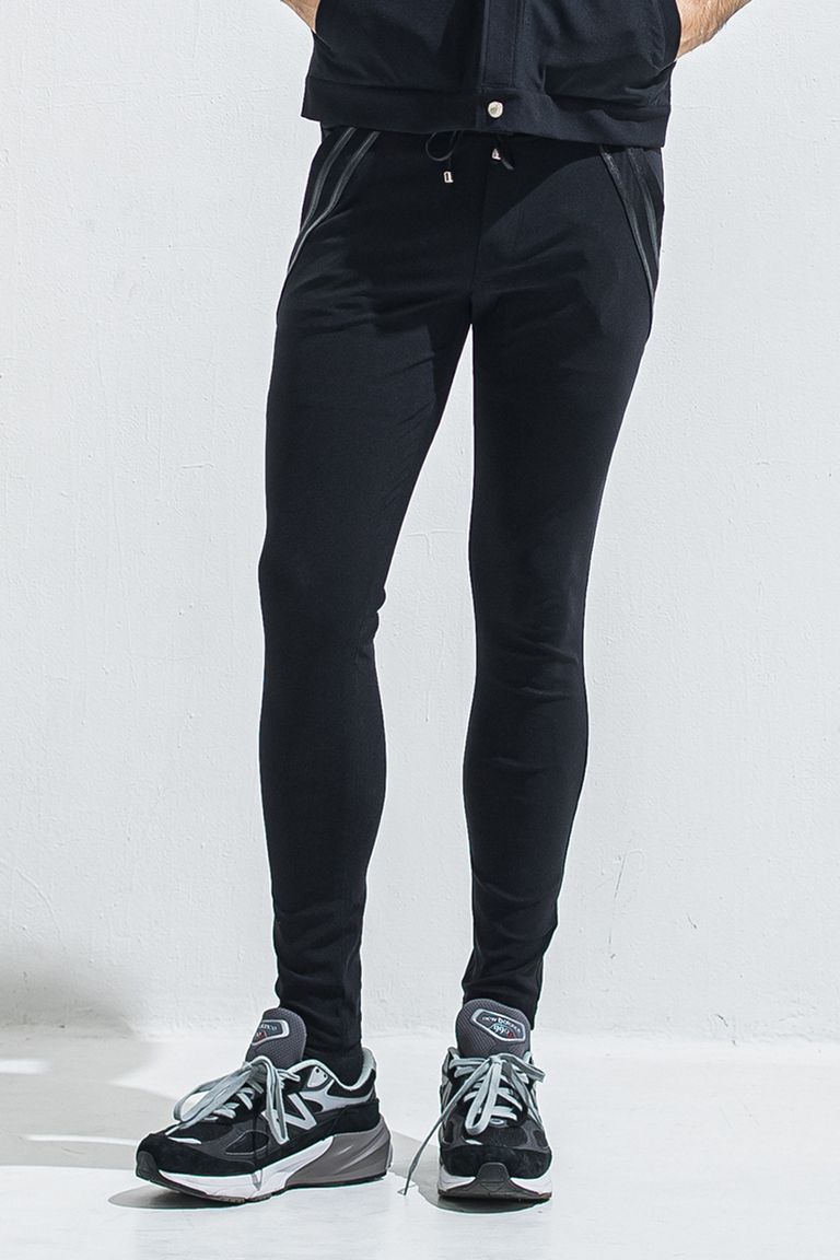 EDGE NYLON PT / 【定番】 ナイロンマイクロファイバー エコレザーライン スキニーイージーパンツ (ブラック/ブラック) (4月末入荷予定) ※オーダー締切:2月15日(日)18時