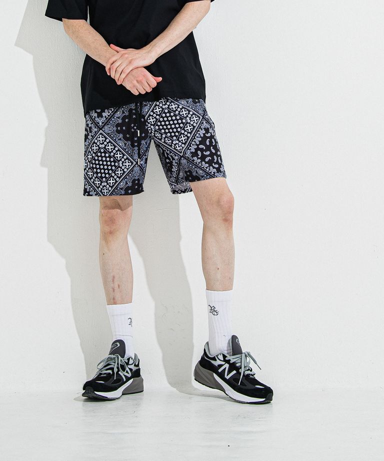 RUSH SHORTS / ラッシュガード バンダナ柄 ショートパンツ (ブラック) (5月末入荷予定) ※オーダー締切:2月15日(日)18時