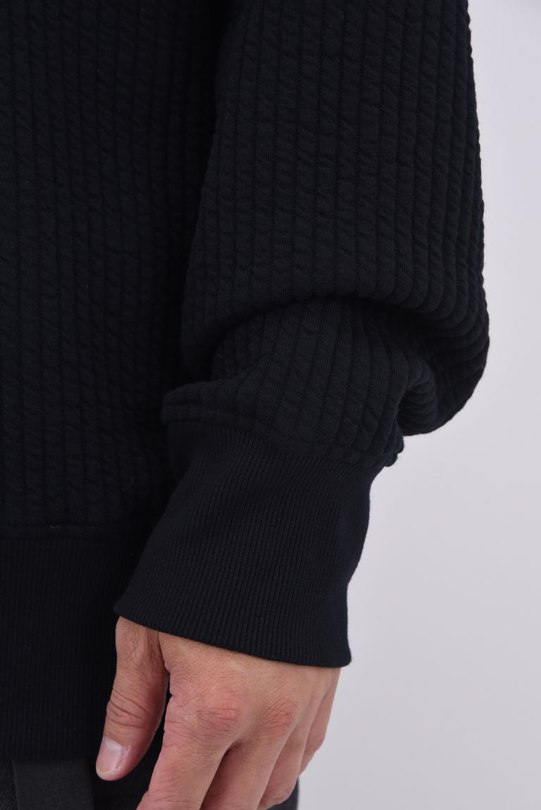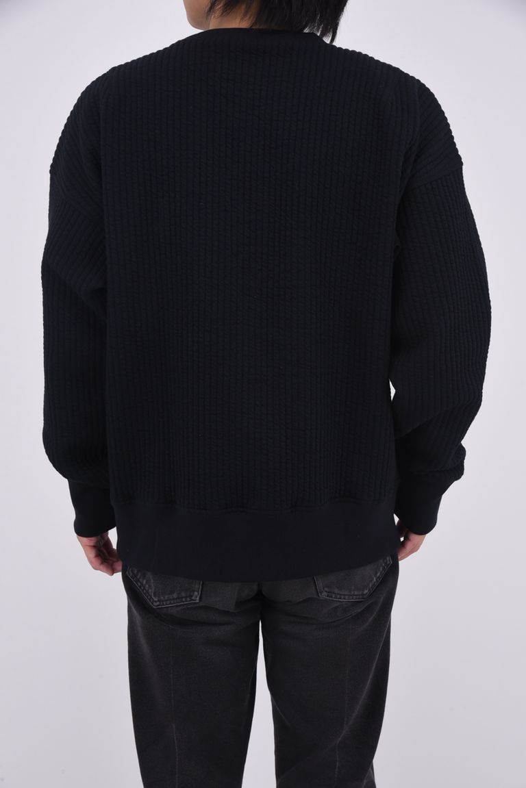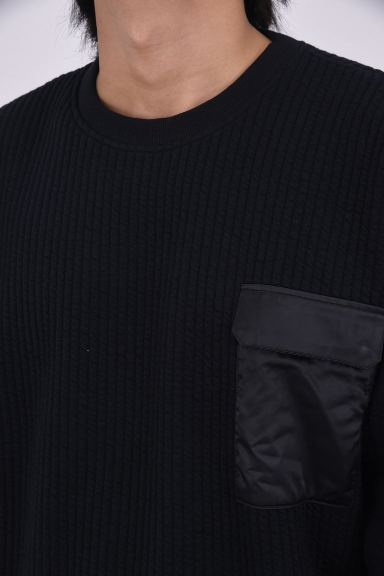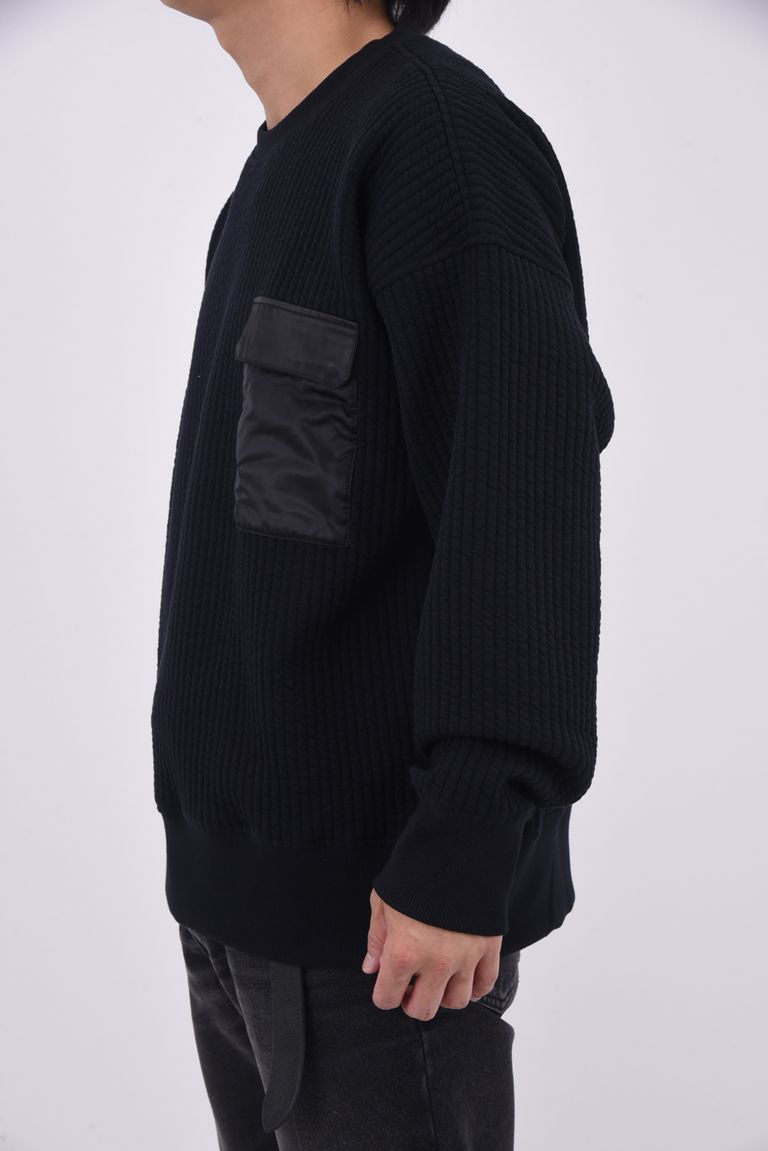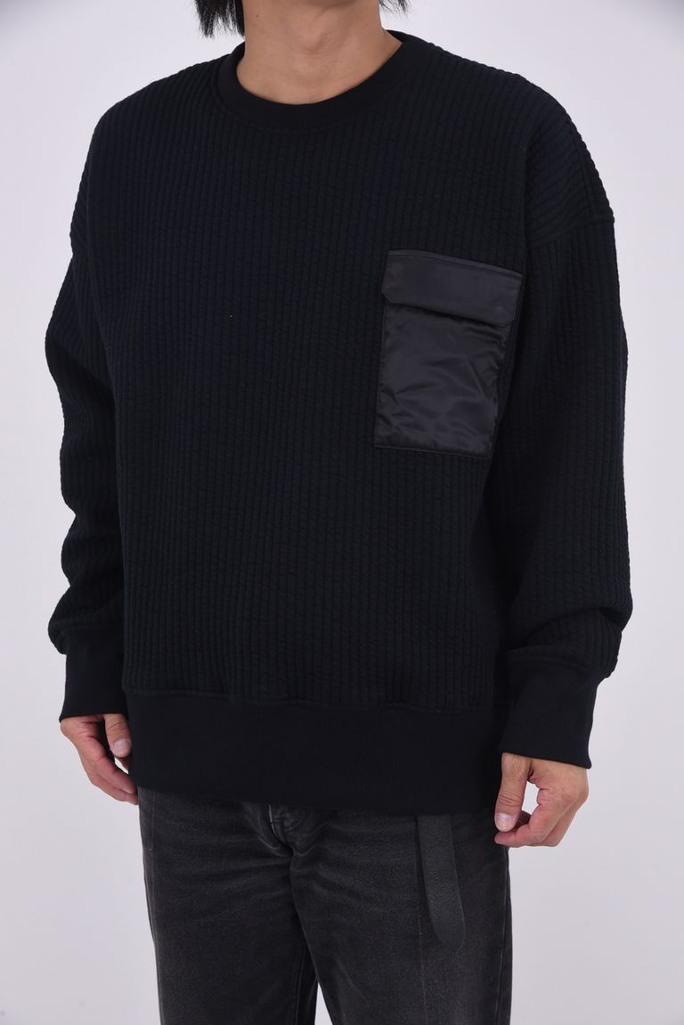 Stripe quilting drop trainer / ストライプキルティング フラップポケット ルーズフィット トレーナー ブラック