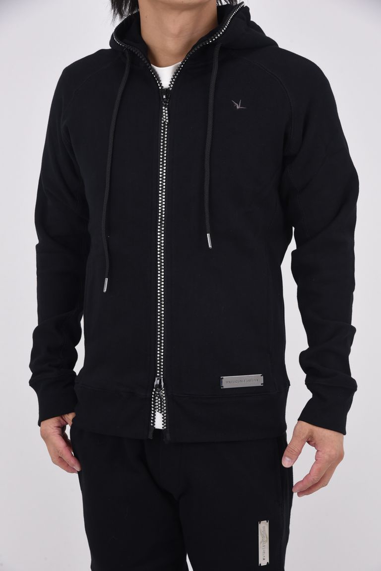 【25AW】 GLITTER ZIP + PLATE HOODIE / シルバーロゴプレートスウェットパーカー (ブラック)