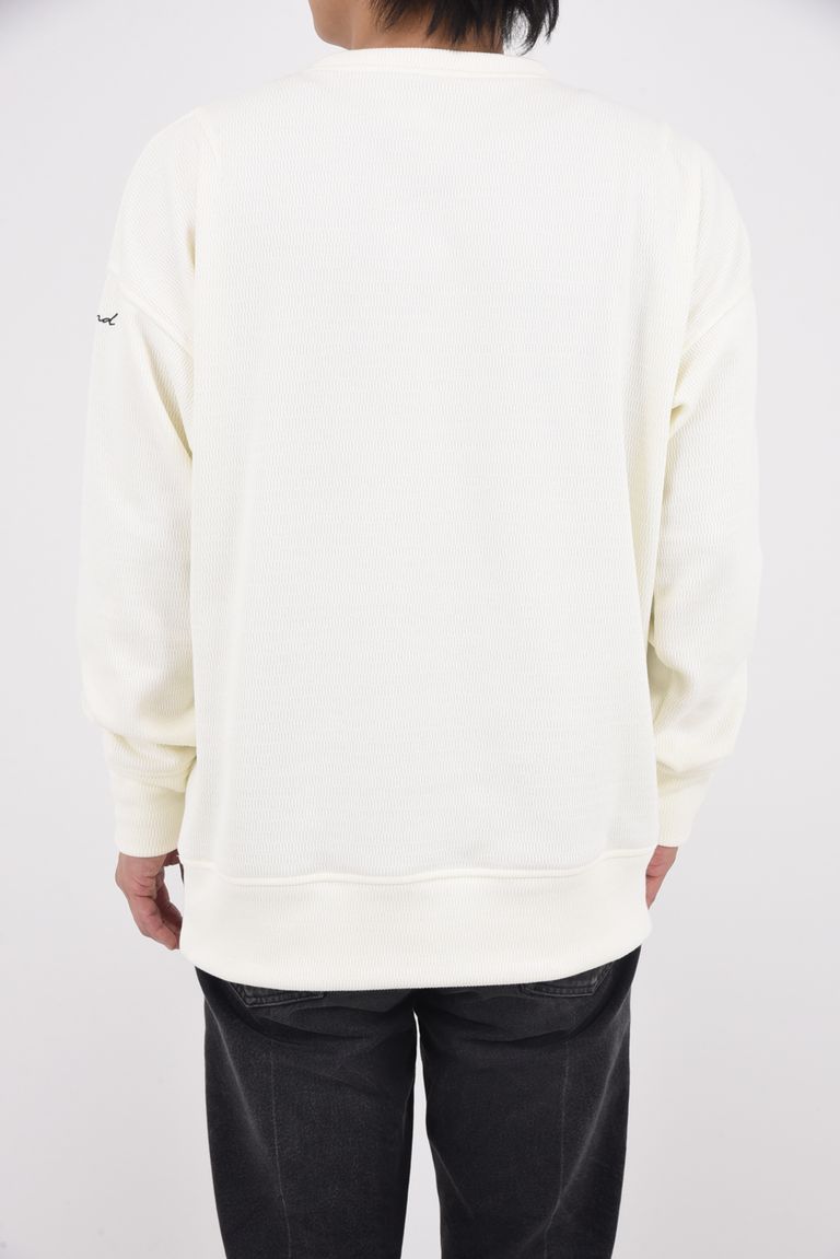 VELOURS FLEECE THERMAL LOOSE TRAINER / 裏起毛 サーマル生地 ロングスリーブ トレーナー (ホワイト)
