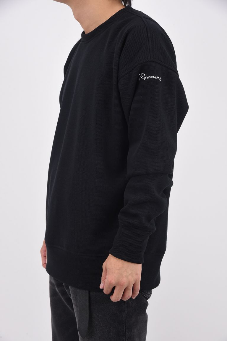 VELOURS FLEECE THERMAL LOOSE TRAINER / 裏起毛 サーマル生地 ロングスリーブ トレーナー (ブラック)