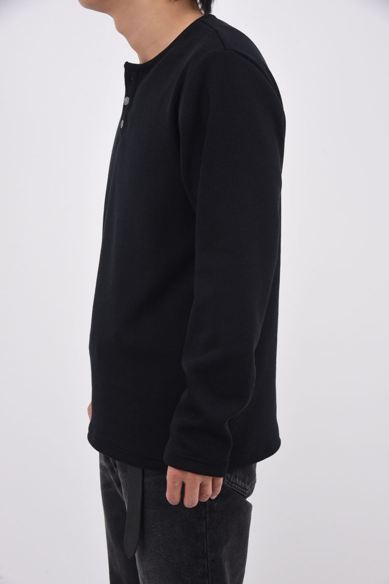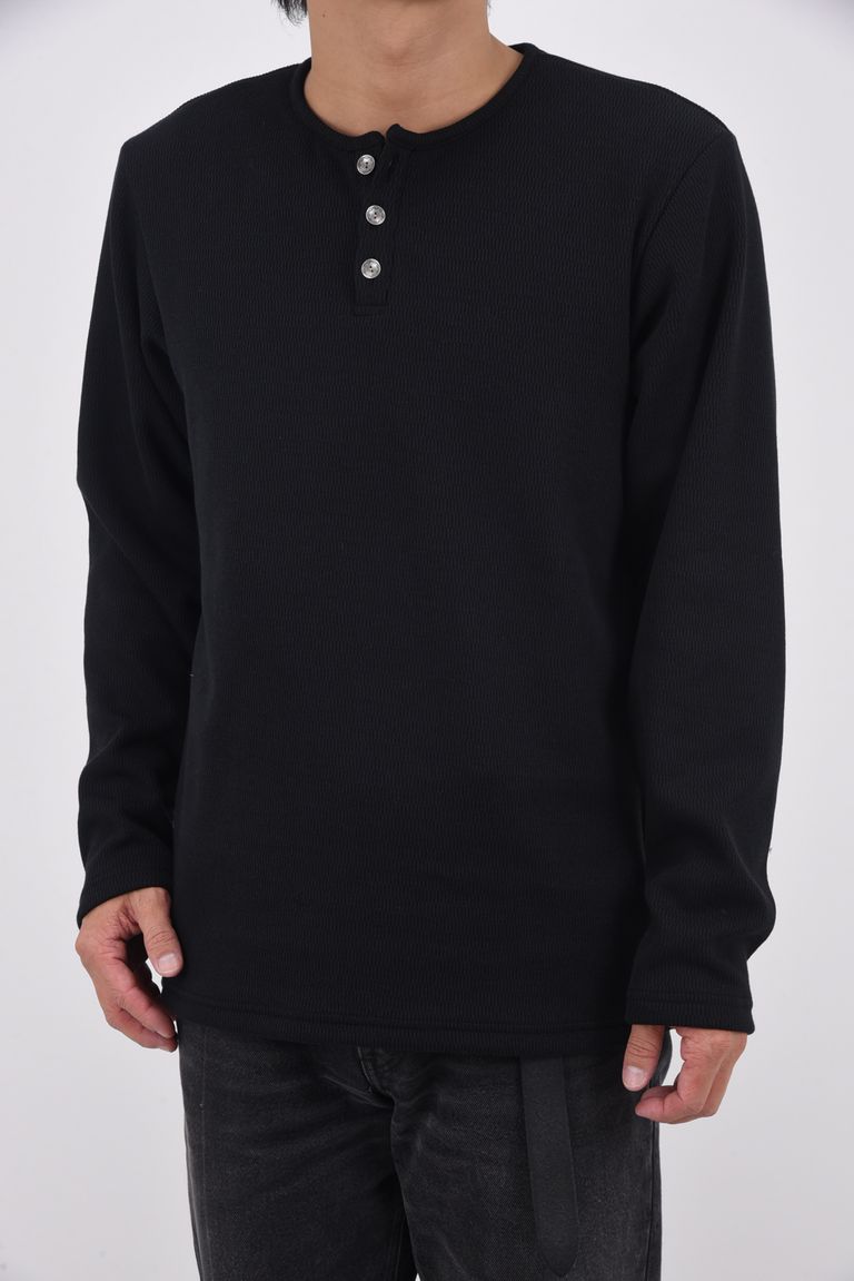 VELOURS FLEECE THERMAL HENRY / 裏起毛 サーマル生地 ロングスリーブ ヘンリーネック (ブラック)