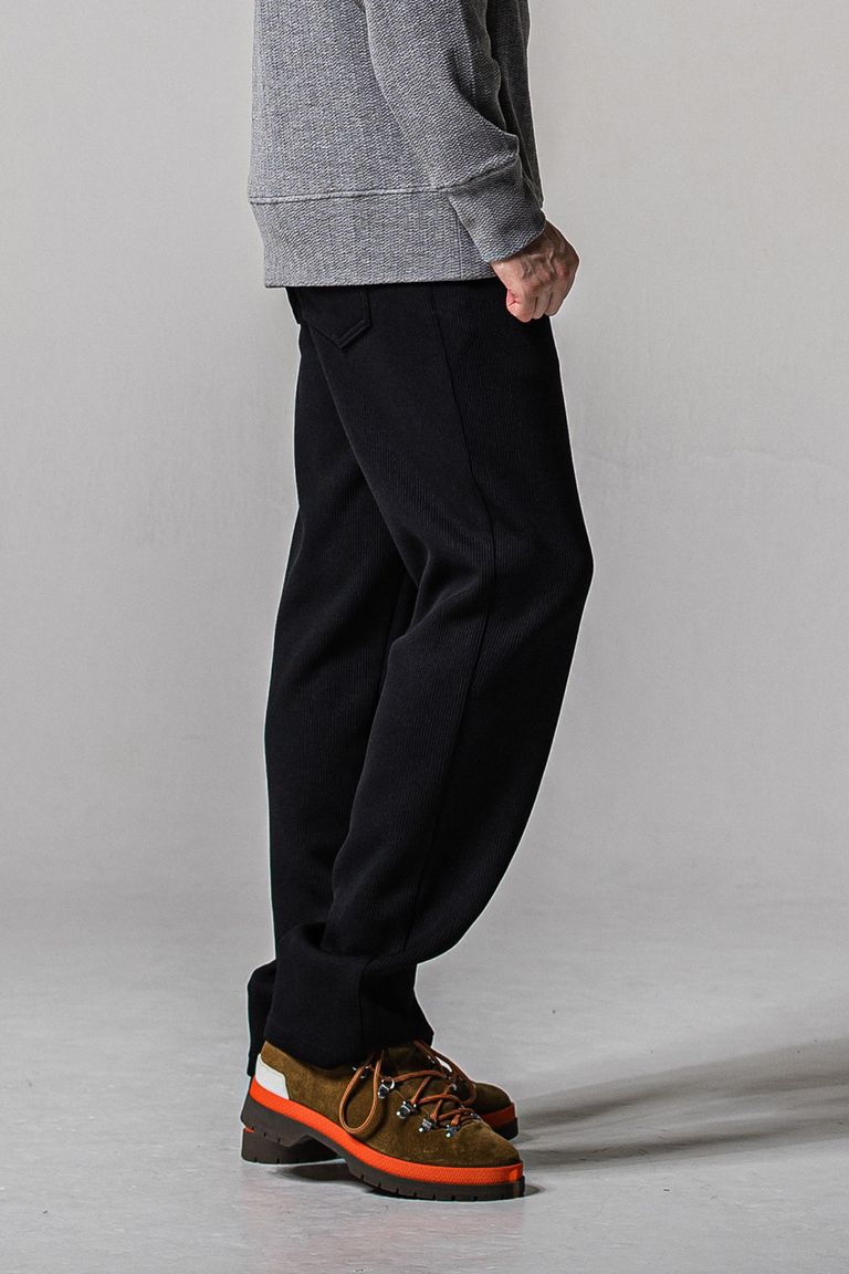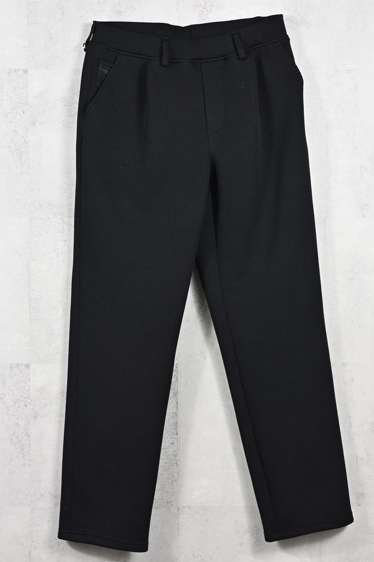 AZE WIDE TUCK PANTS / 畔編みニット生地 セミワイドシルエット イージータックパンツ (ブラック) (1月中旬入荷予定)