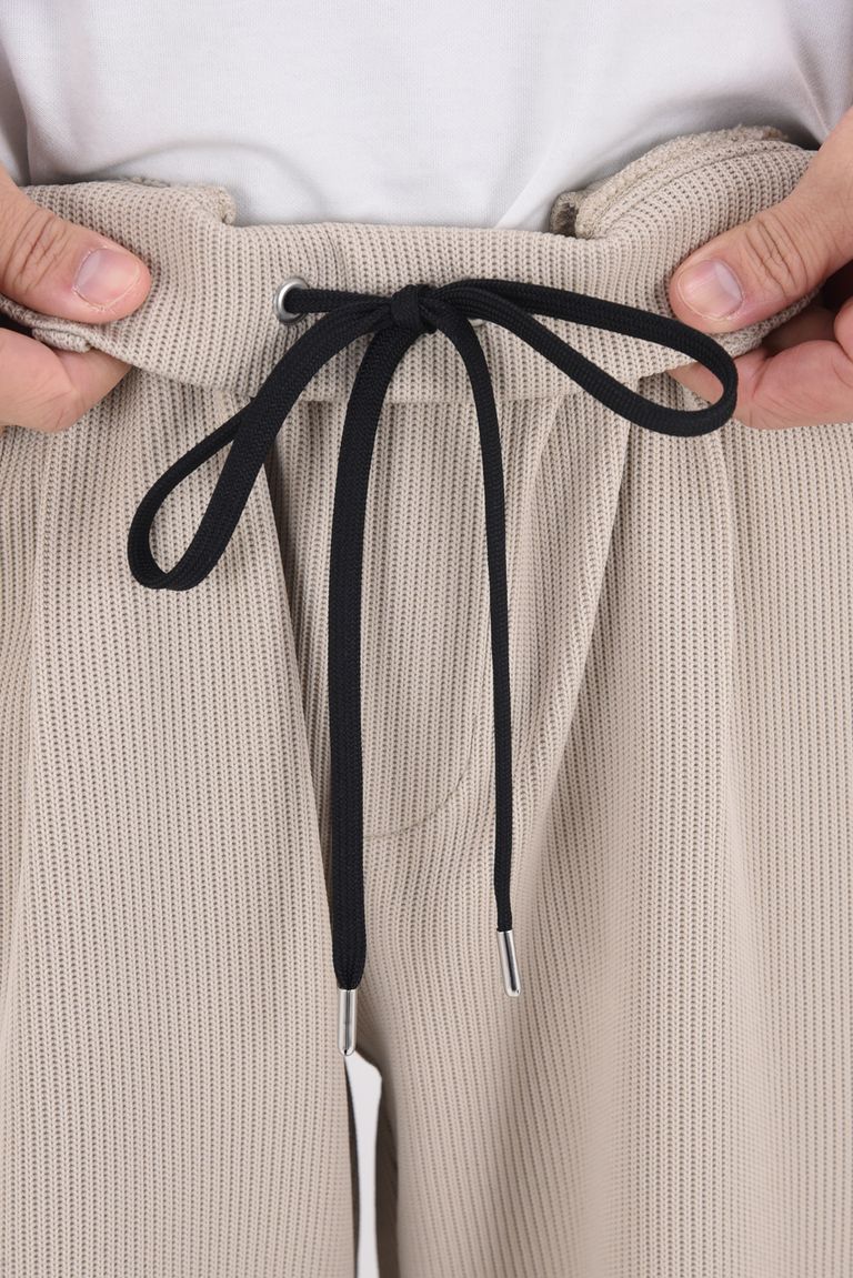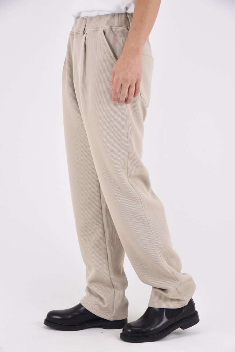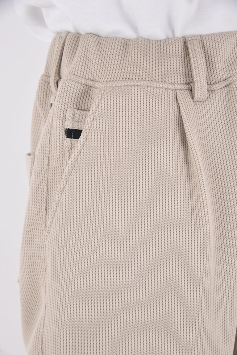 【26SS 39th】 AZE WIDE TUCK PANTS / 畔編みニット生地 セミワイドシルエット イージータックパンツ (グレージュ)