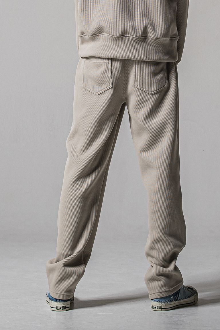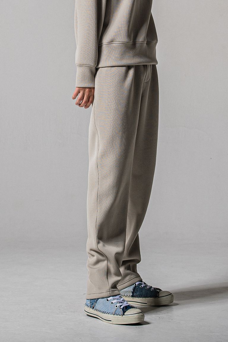 AZE WIDE TUCK PANTS / 畔編みニット生地 セミワイドシルエット イージータックパンツ (グレージュ) (1月中旬入荷予定)