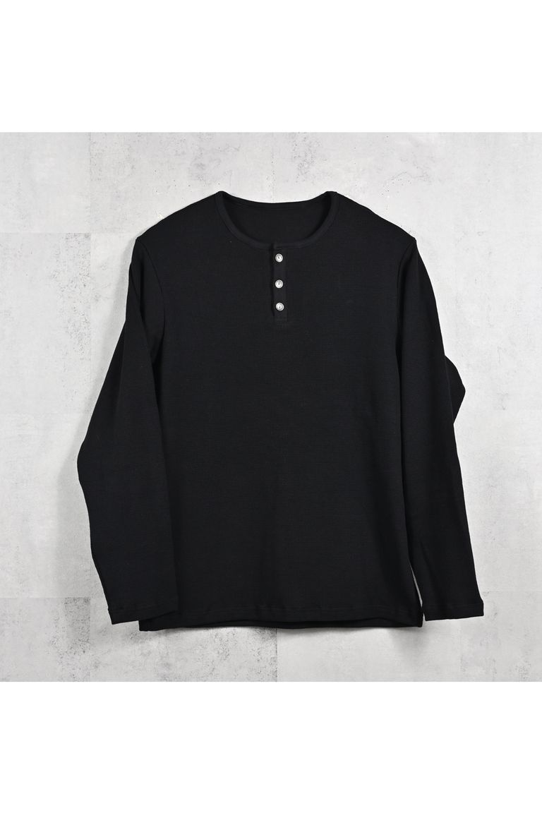 WAFFLE HENRY TEE / ワッフル ヘンリーTシャツ (ブラック) (1月中旬入荷予定)