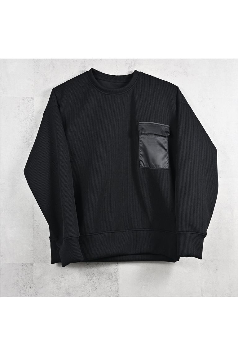 AZE MILITARY DROP TRAINER / 畦編みニット フラップポケット スウェット (ブラック) (1月末入荷予定)