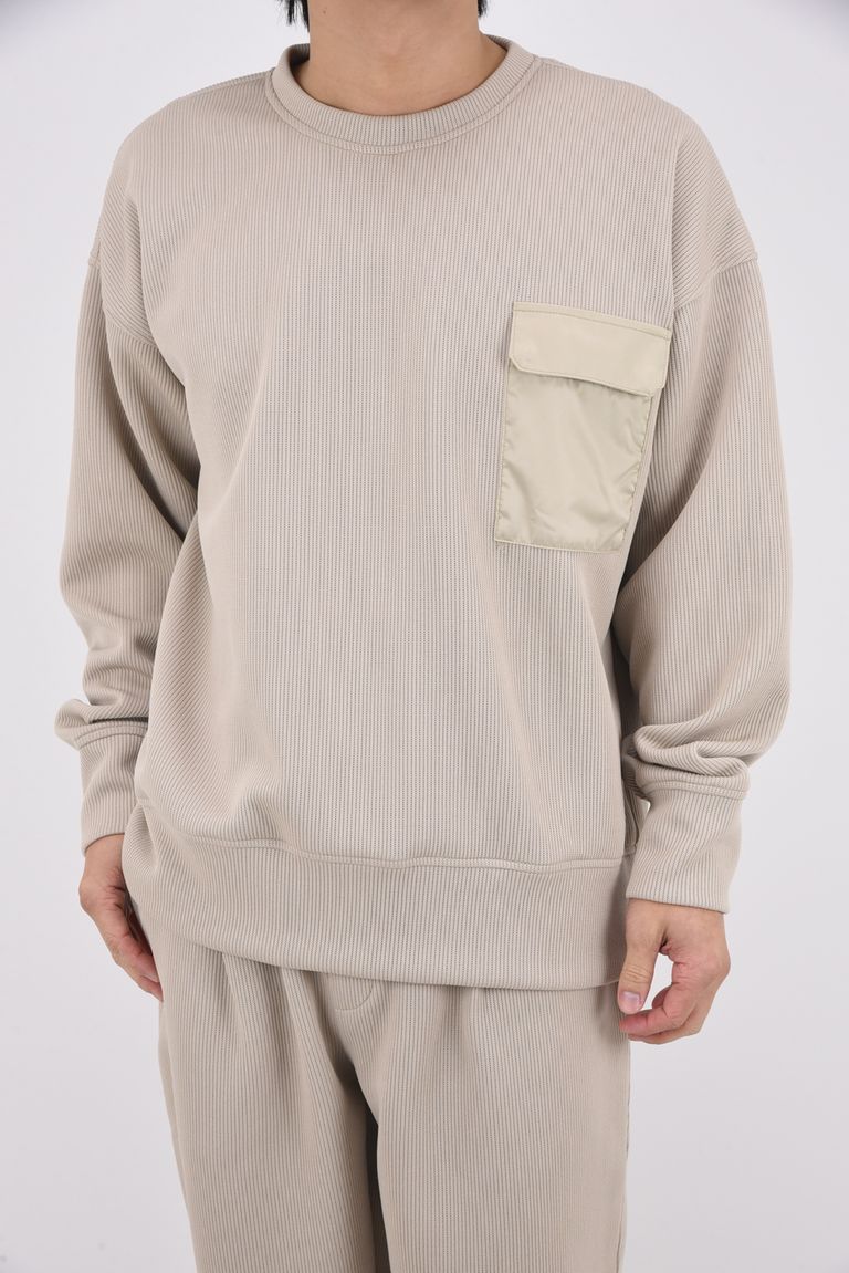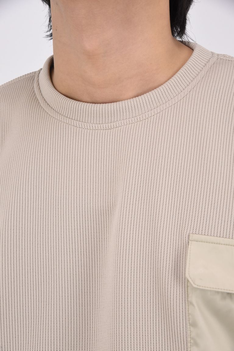 【26SS 39th】 AZE MILITARY DROP TRAINER / 畦編みニット フラップポケット スウェット (グレージュ)