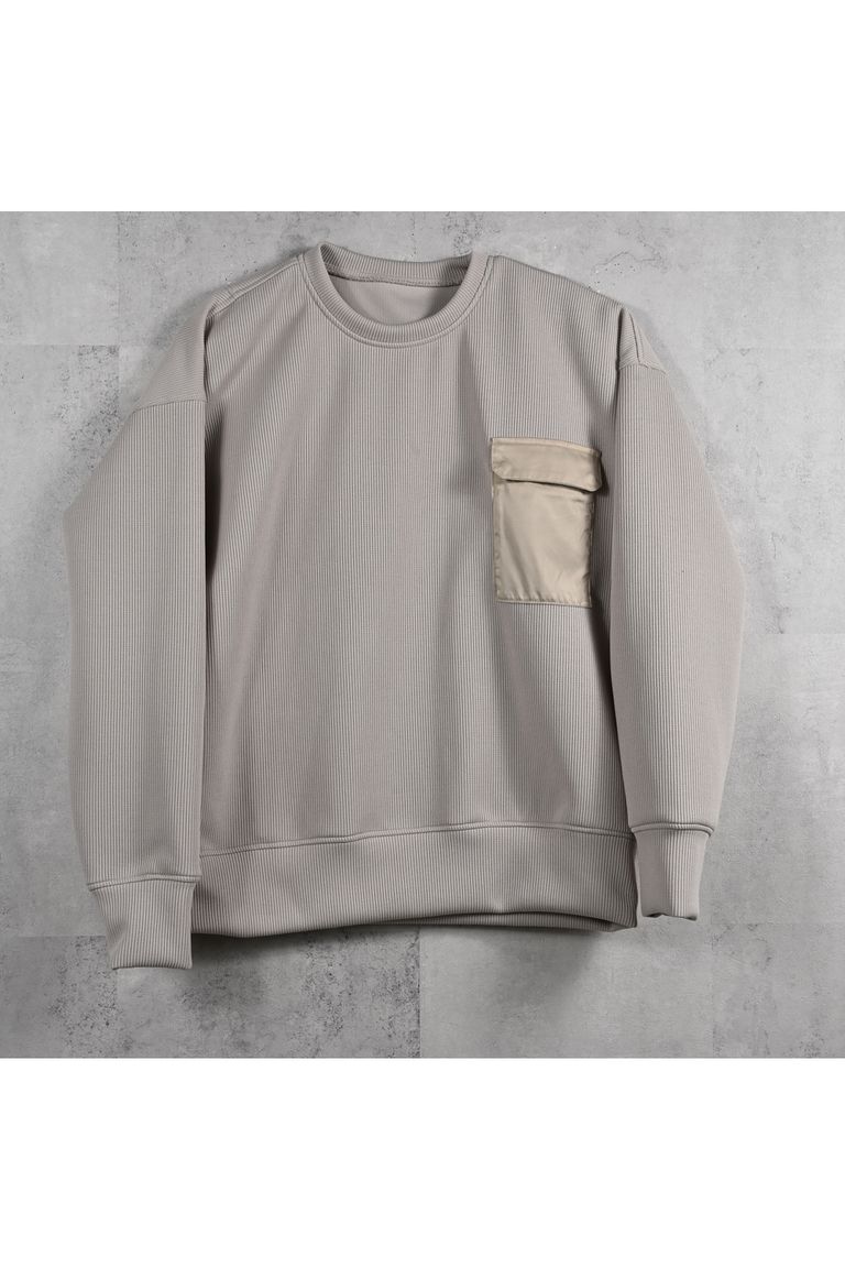 AZE MILITARY DROP TRAINER / 畦編みニット フラップポケット スウェット (グレージュ) (1月末入荷予定)