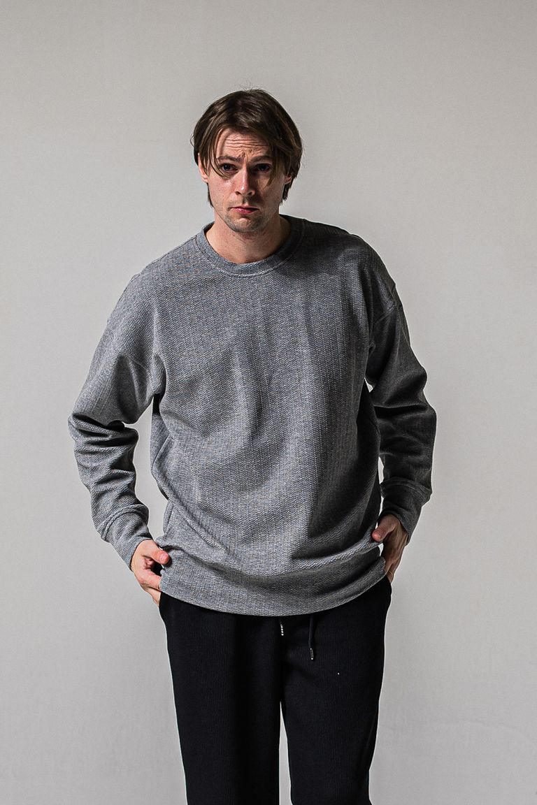 BLISTER TRAINER / オーバーサイズ ブリスターニットトレーナー (グレー) (1月中旬入荷予定)