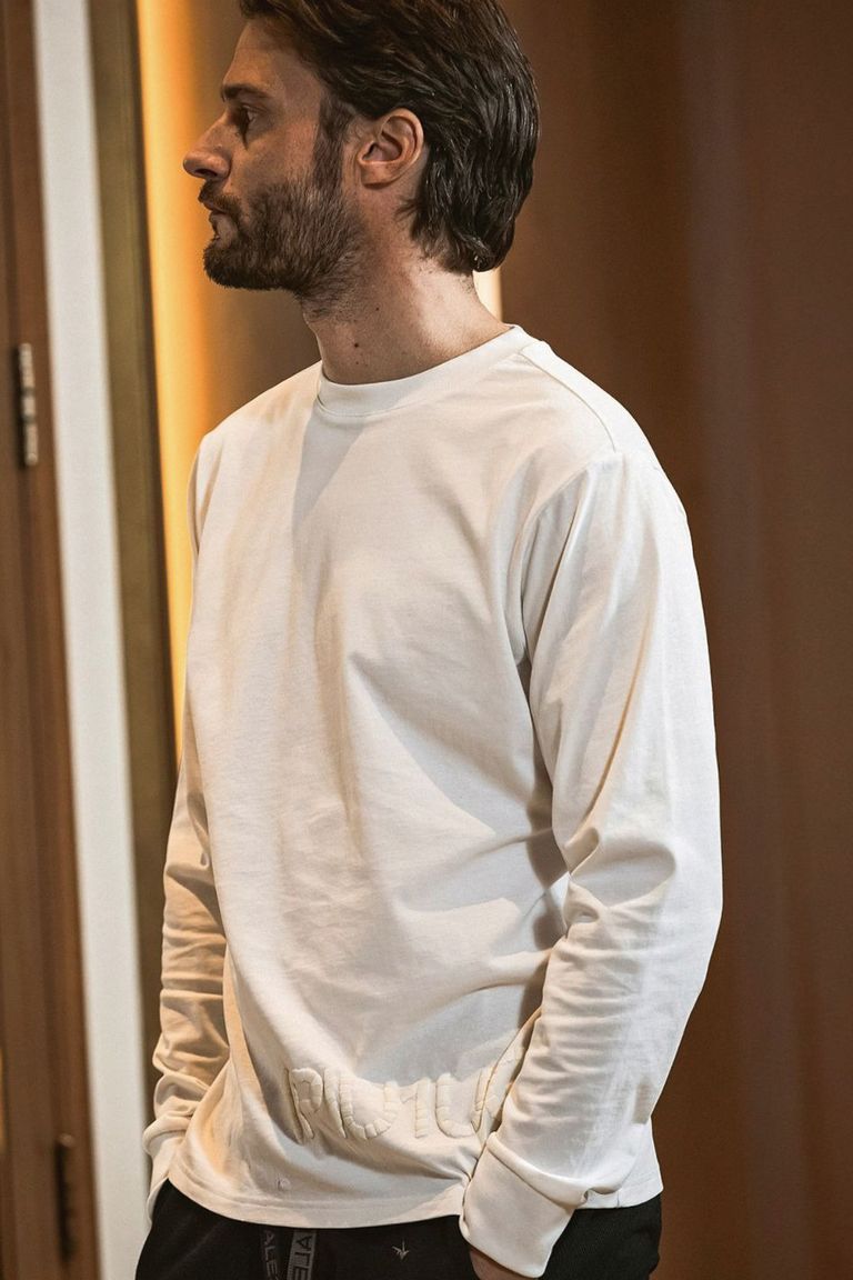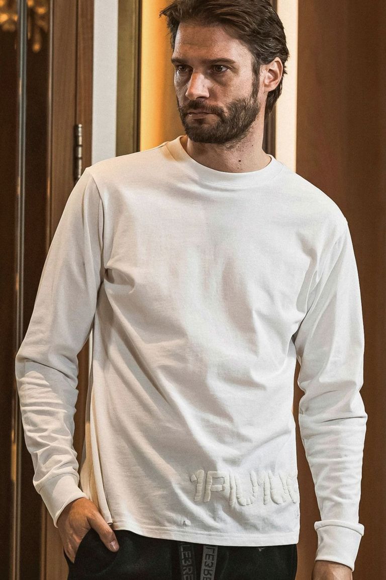 【26SS】 HAND-EMBROIDERED LOGO LONG T-SHIRT / ブランドロゴ 発泡ロゴプリント ロングスリーブTシャツ (ホワイト)
