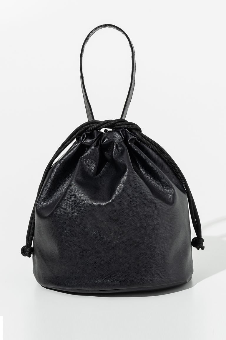 SAFFIANO DRAWSTRING BAG / サフィアーノエコレザー 巾着バッグ (ブラック) (12月中旬入荷予定)
