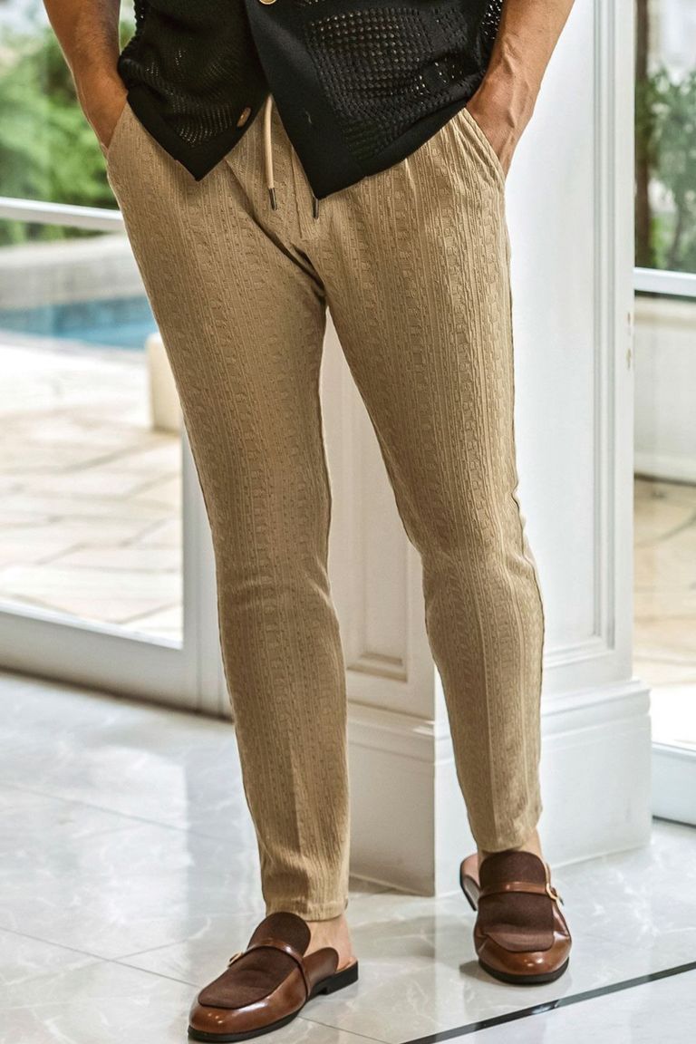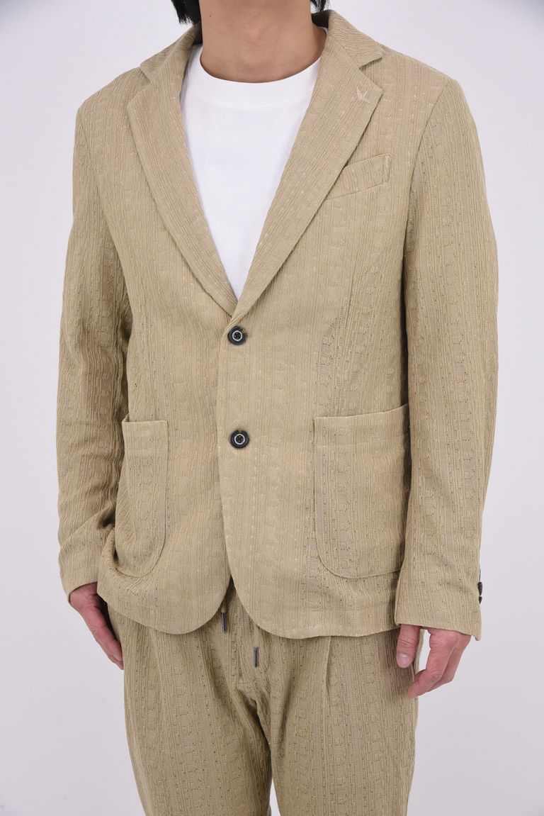 【26SS】【セットアップ】 LINEN TOUCH JACQUARD JACKET & SLACKS / リネンタッチ テーラードシングルジャケット&イージースラックス (ベージュ)