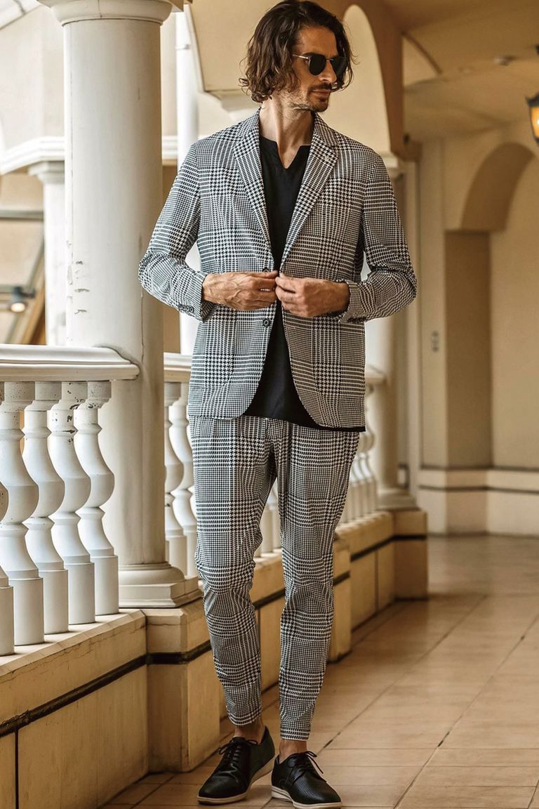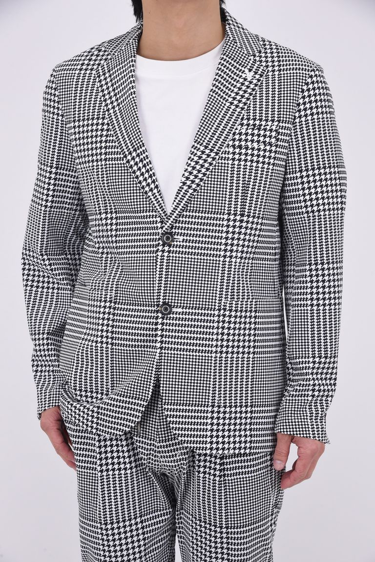 【26SS】【セットアップ】 GLEN CHECK NYLON JACKET & SLACKS / グレンチェック テーラードシングルジャケット&イージースラックス (ホワイト/ブラック)