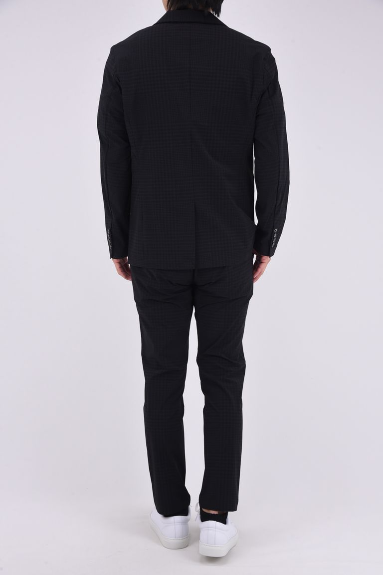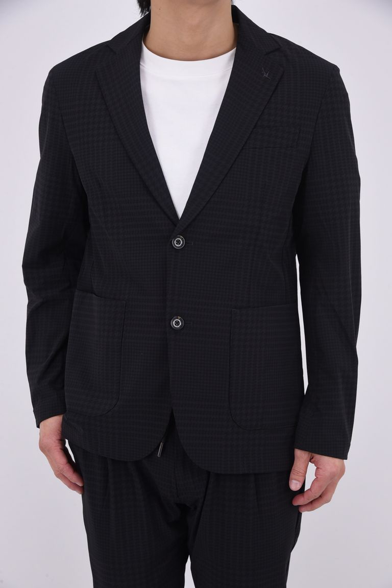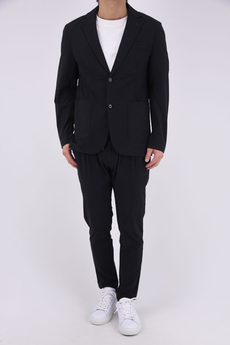 【26SS】【セットアップ】 GLEN CHECK NYLON JACKET & SLACKS / グレンチェック テーラードシングルジャケット&イージースラックス (チャコール/ブラック)