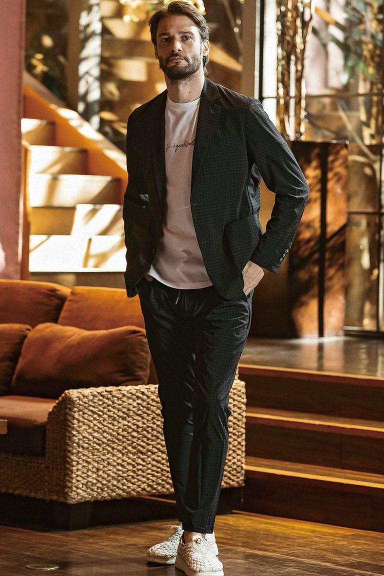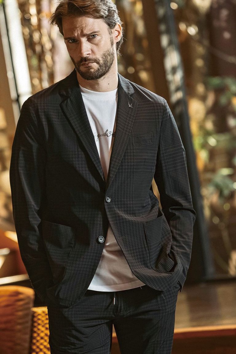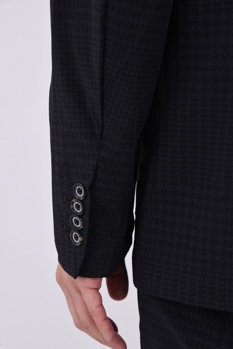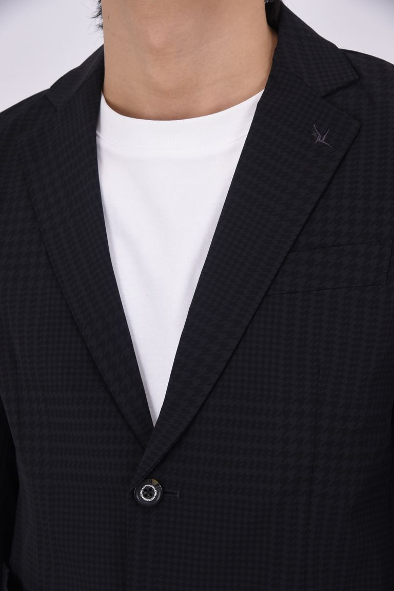 【26SS】【セットアップ】 GLEN CHECK NYLON JACKET & SLACKS / グレンチェック テーラードシングルジャケット&イージースラックス (チャコール/ブラック)