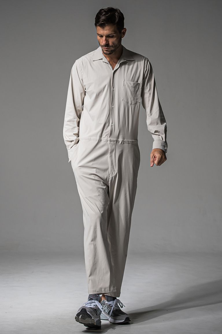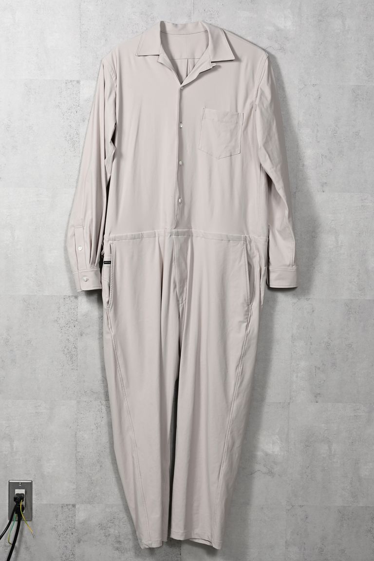 RAGE NYLON ALL IN ONE / ストレッチナイロン ロングスリーブ オープンカラーシャツ オールインワン (グレージュ) (3月中旬入荷予定) ※オーダー締切12/13(土)17:00