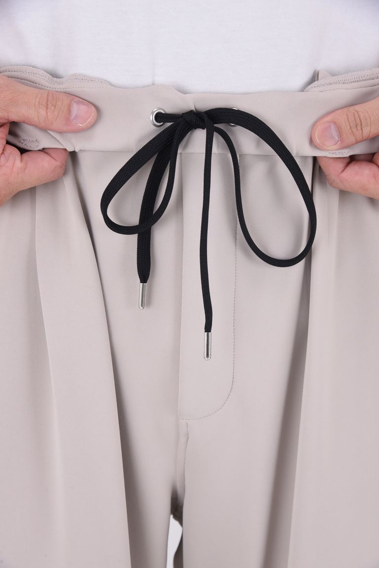EMILIO DB WIDE PANTS / ダンボール素材 接触冷感 エコレザーコインポケット スラックス型イージーワイドパンツ (グレージュ)