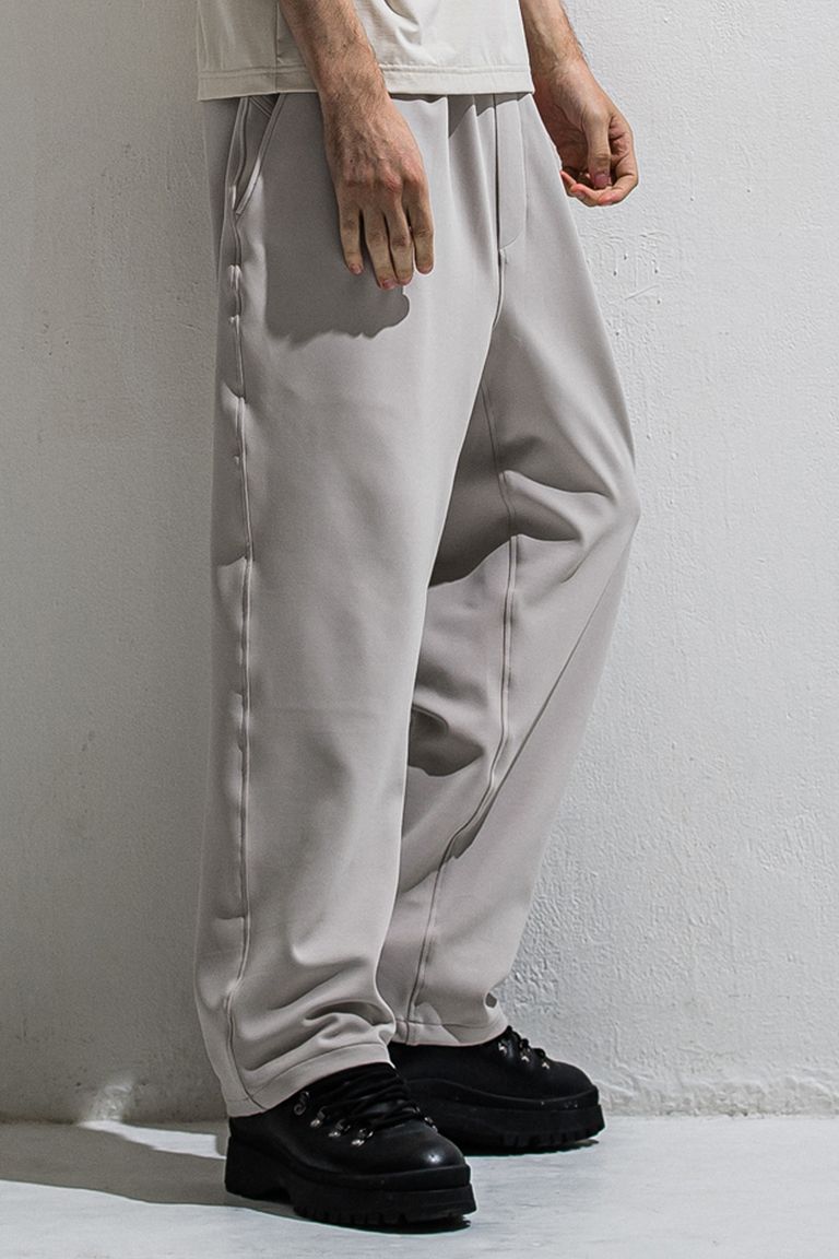 EMILIO DB WIDE PANTS / ダンボール素材 接触冷感 エコレザーコインポケット スラックス型イージーワイドパンツ (グレージュ) (3月中旬入荷予定) ※オーダー締切12/13(土)17:00