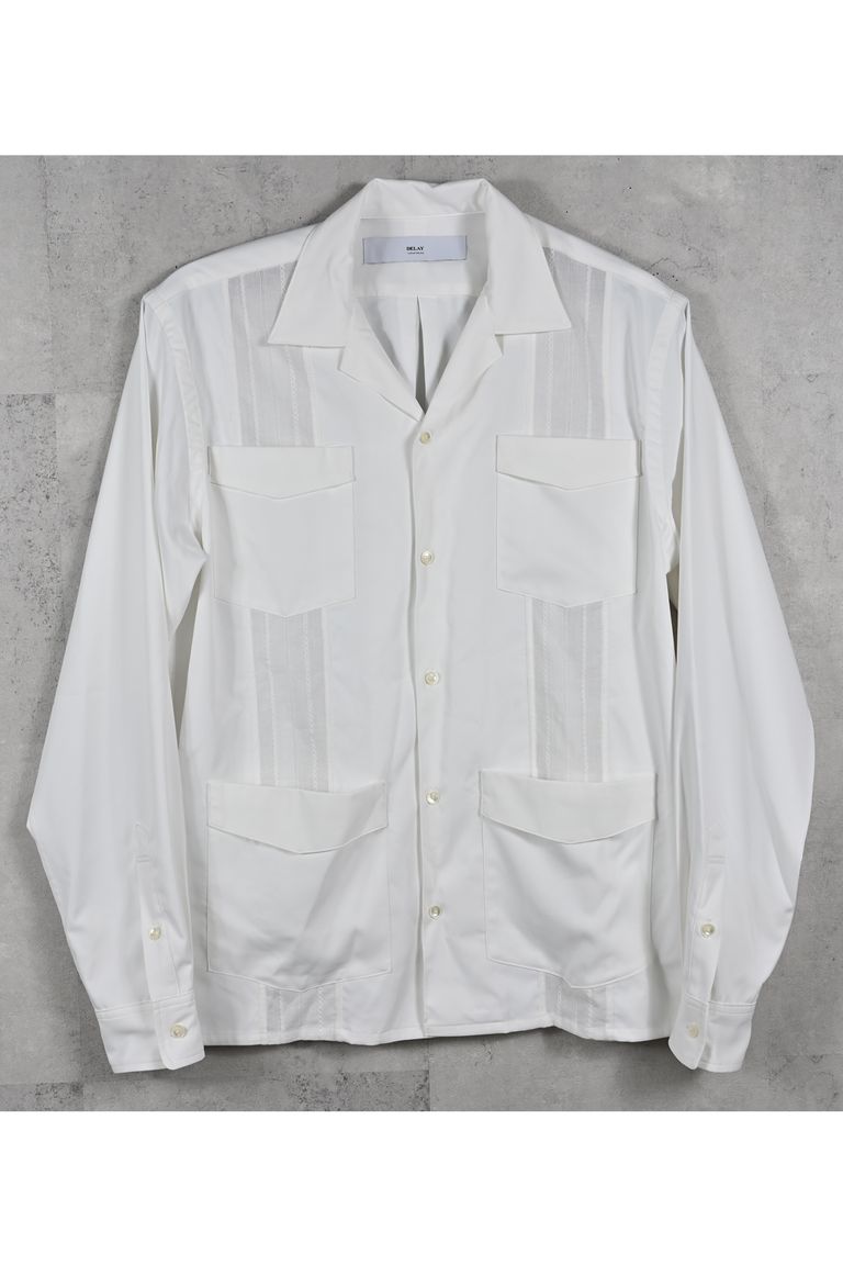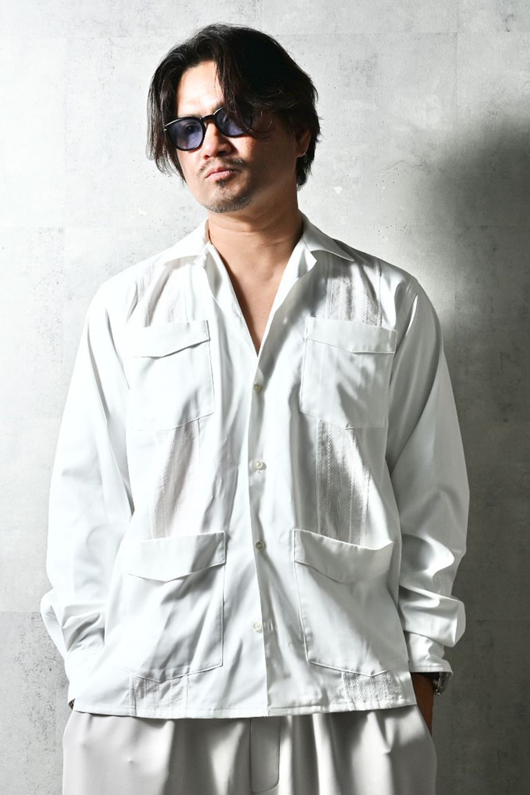 GUAYABERA SHIRTS / リラックスシルエット ストライプ柄 キューバシャツ (ホワイト) (3月中旬入荷予定) ※オーダー締切12/13(土)17:00