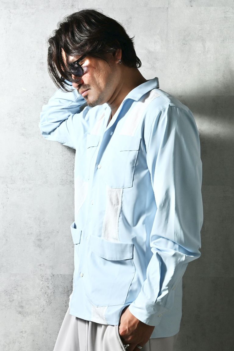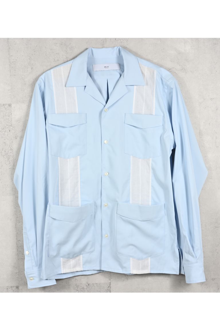 GUAYABERA SHIRTS / リラックスシルエット ストライプ柄 キューバシャツ (サックス) (3月中旬入荷予定) ※オーダー締切12/13(土)17:00