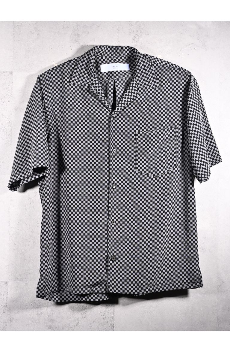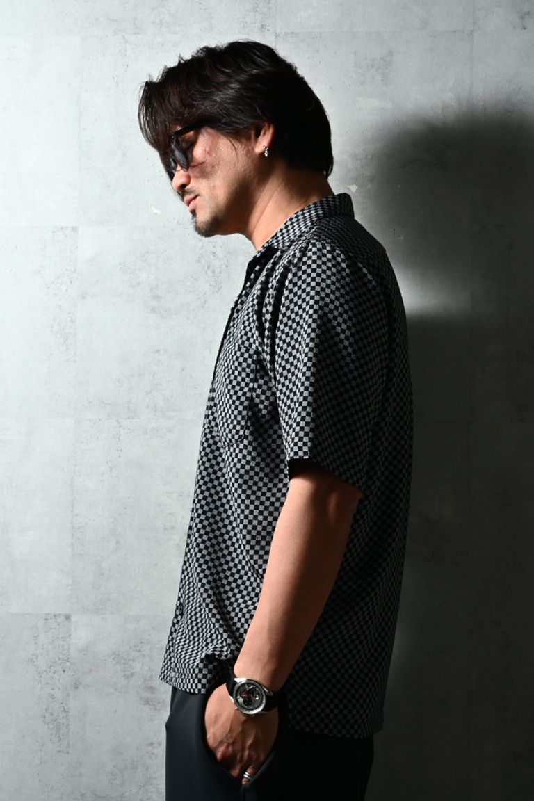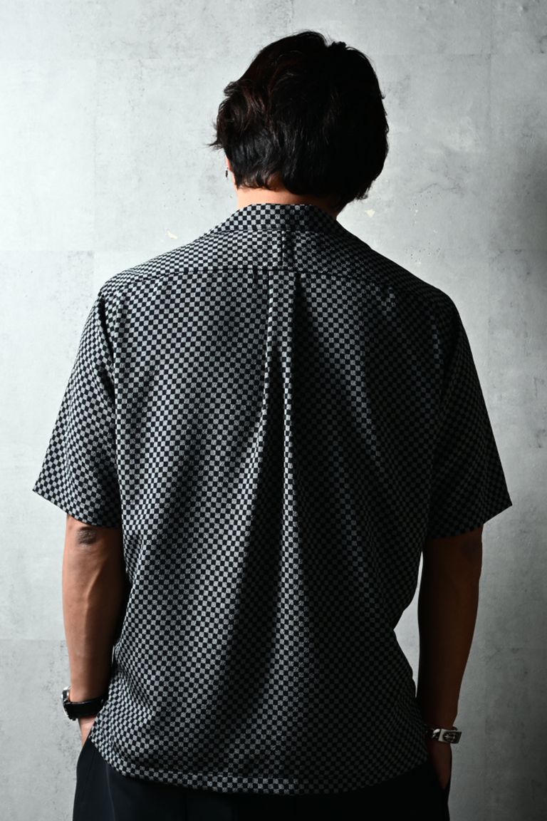 ICHIMATU SHIRTS / 市松模様 ハーフスリーブ オープンカラーシャツ (ブラック/グレー) (3月中旬入荷予定) ※オーダー締切12/13(土)17:00