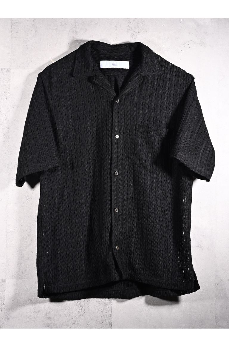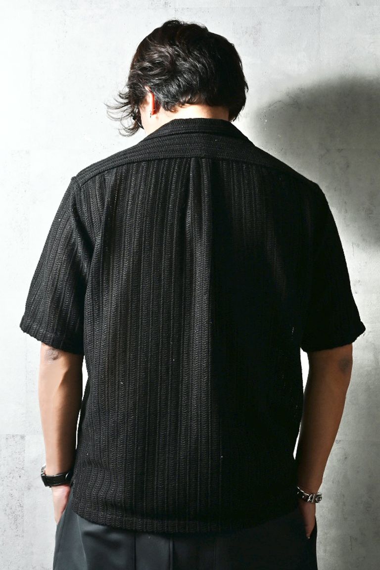 RUSSEL SHIRTS / リラックスシルエット ラッセル織り オープンカラーシャツ (ブラック) (3月中旬入荷予定) ※オーダー締切12/13(土)17:00
