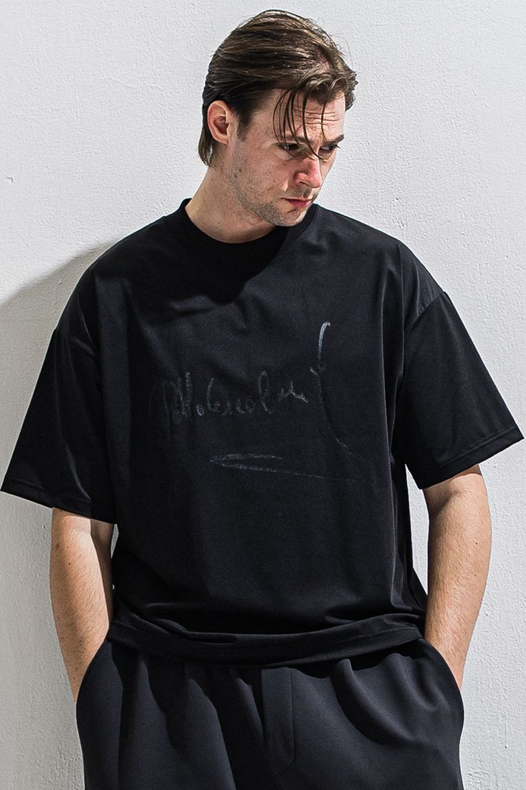 PB SIGN OVERNYLON T / ナイロントリコット サインプリント オーバーサイズ Tシャツ (ブラック) (4月上旬入荷予定) ※オーダー締切12/13(土)17:00