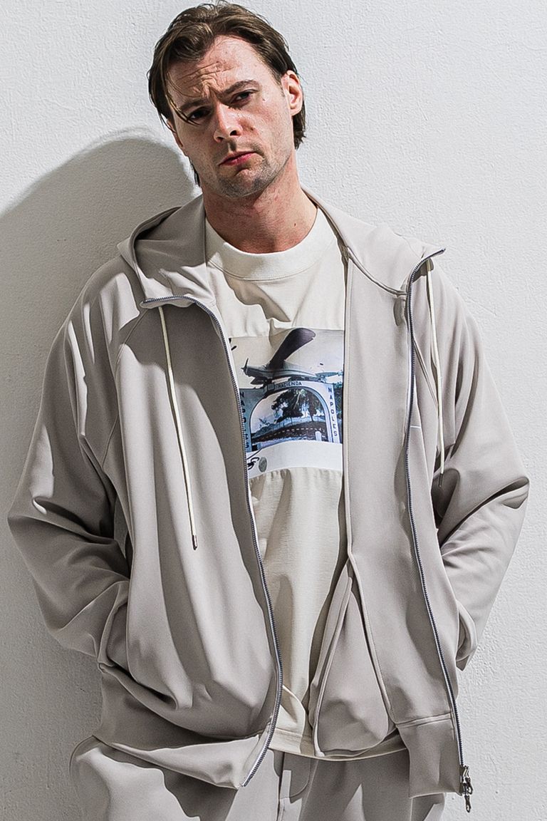 SIGN ZIP HOODIE / サインプリント ジップアップパーカー (グレージュ) (2月上旬入荷予定) ※オーダー締切12/13(土)17:00