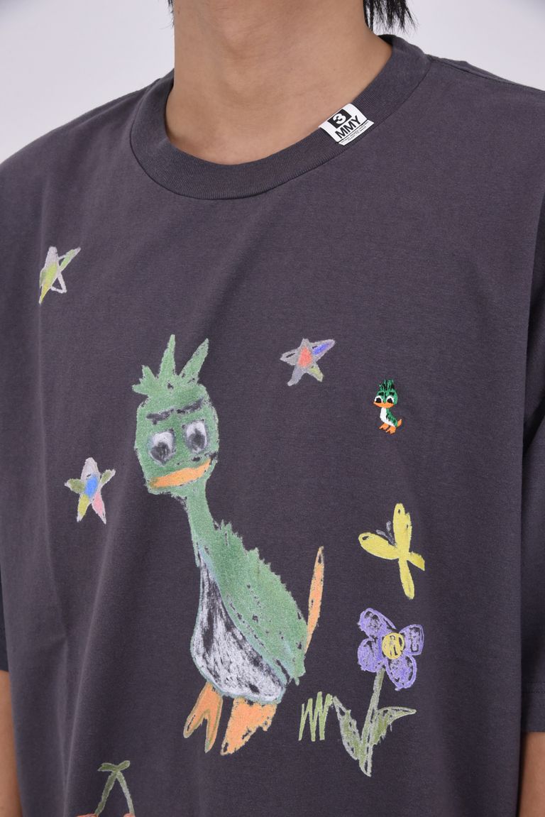 LEON KIDS DOODLE T-shirt / キャラクタープリント 刺繍ワッペン Tシャツ (ブラック)