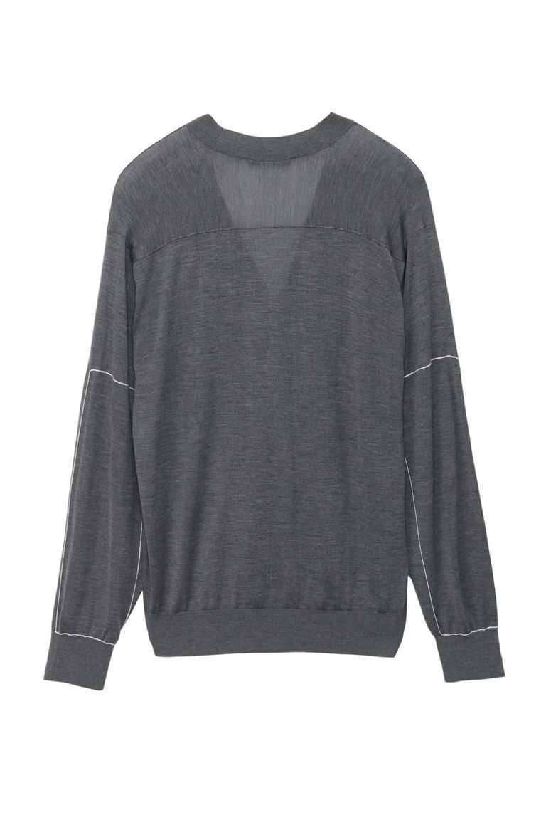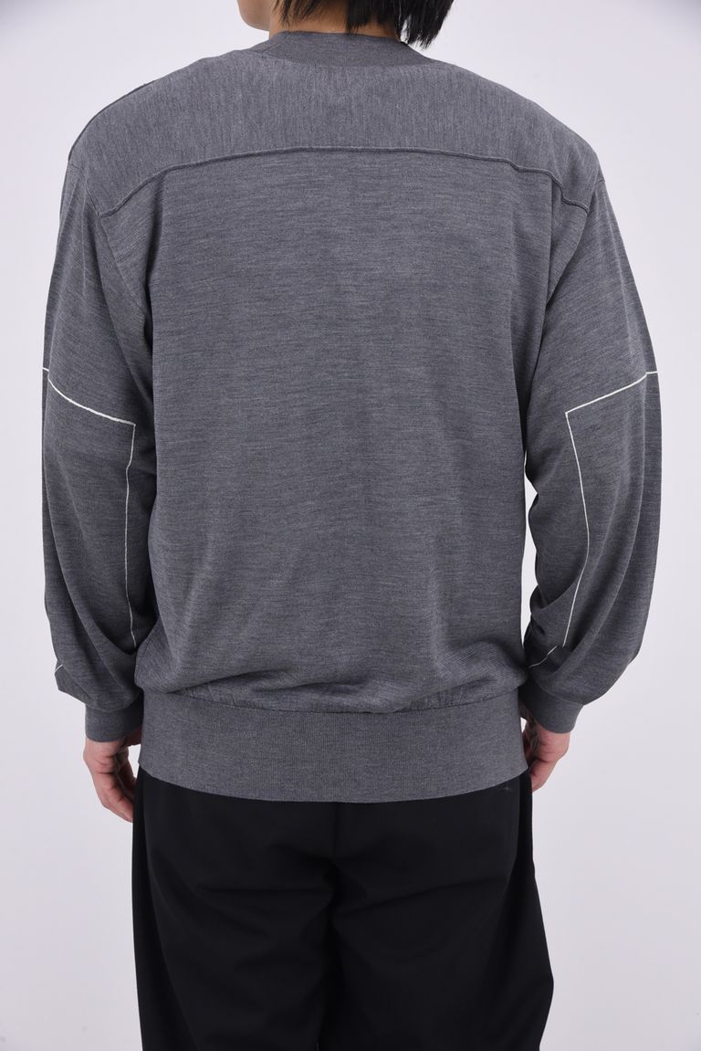 SILK ELBOW STITCH KNIT CARDIGAN / シルク エルボーステッチ ニットカーディガン (グレー)