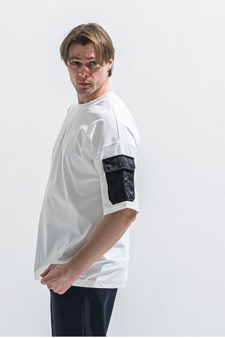 militaryPocket nylon OVER TEE / ミリタリーポケット ナイロン オーバーサイズ Tシャツ (ホワイト) (6月上旬入荷予定) ※オーダー締切:2月15日(日)18時