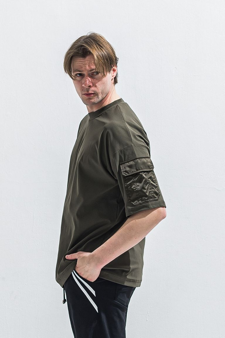 militaryPocket nylon OVER TEE / ミリタリーポケット ナイロン オーバーサイズ Tシャツ (カーキ) (6月上旬入荷予定) ※オーダー締切:2月15日(日)18時