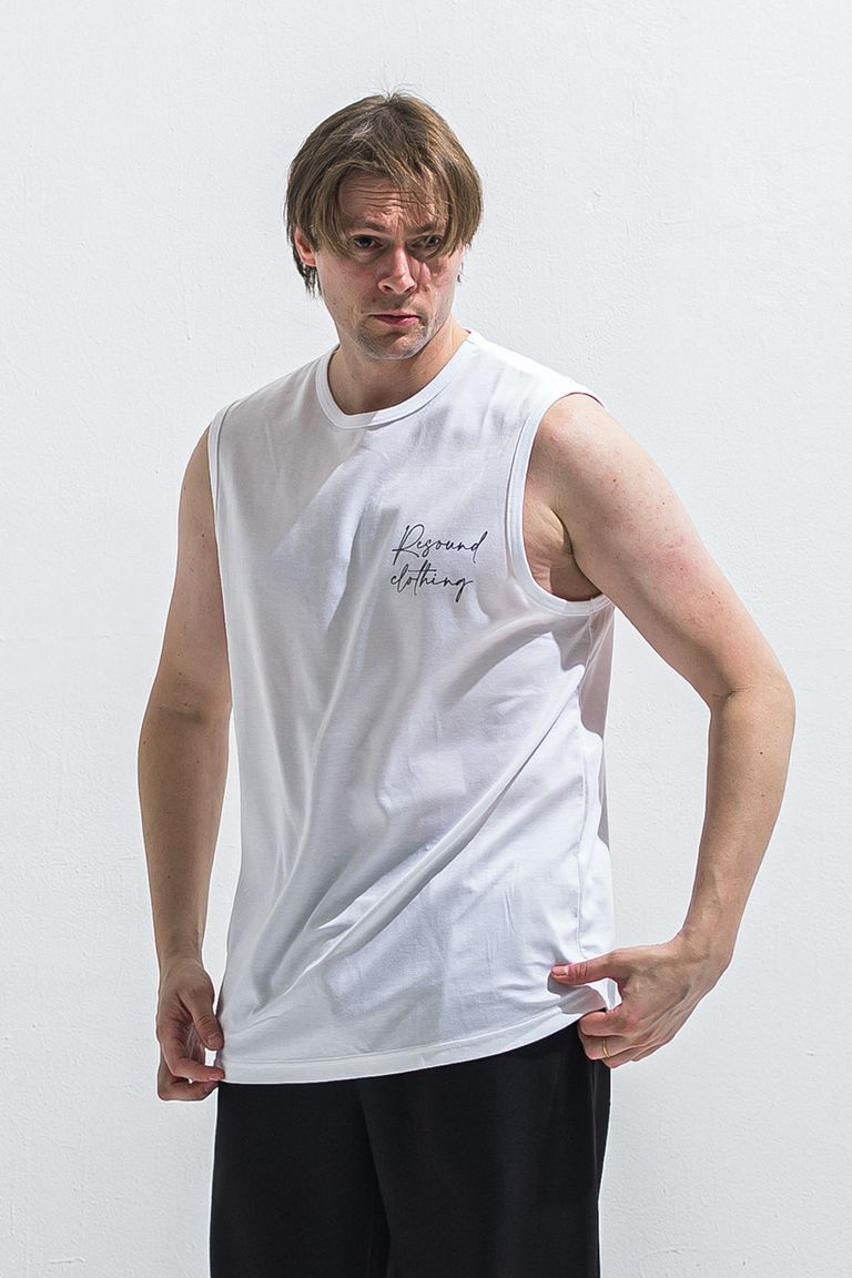 OVER NO SLEEVE / カリグラフィーロゴ オーバーサイズ ノースリーブ (ホワイト) (6月上旬入荷予定) ※オーダー締切:2月15日(日)18時
