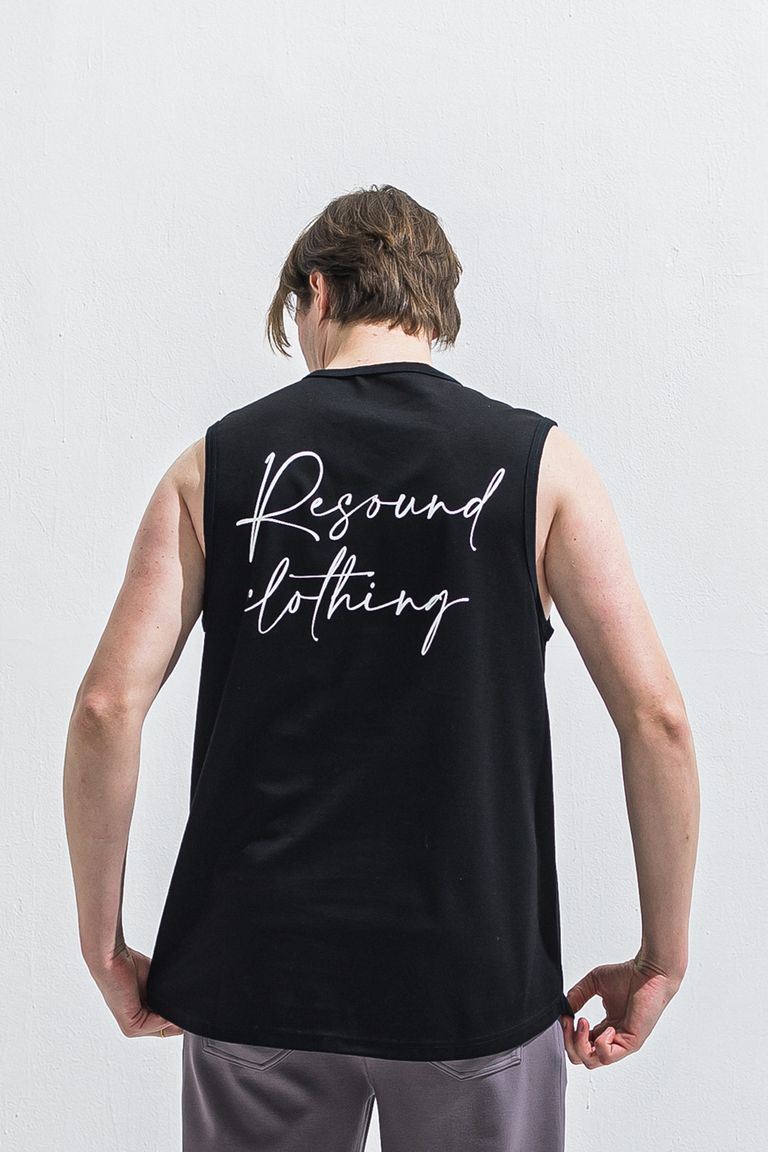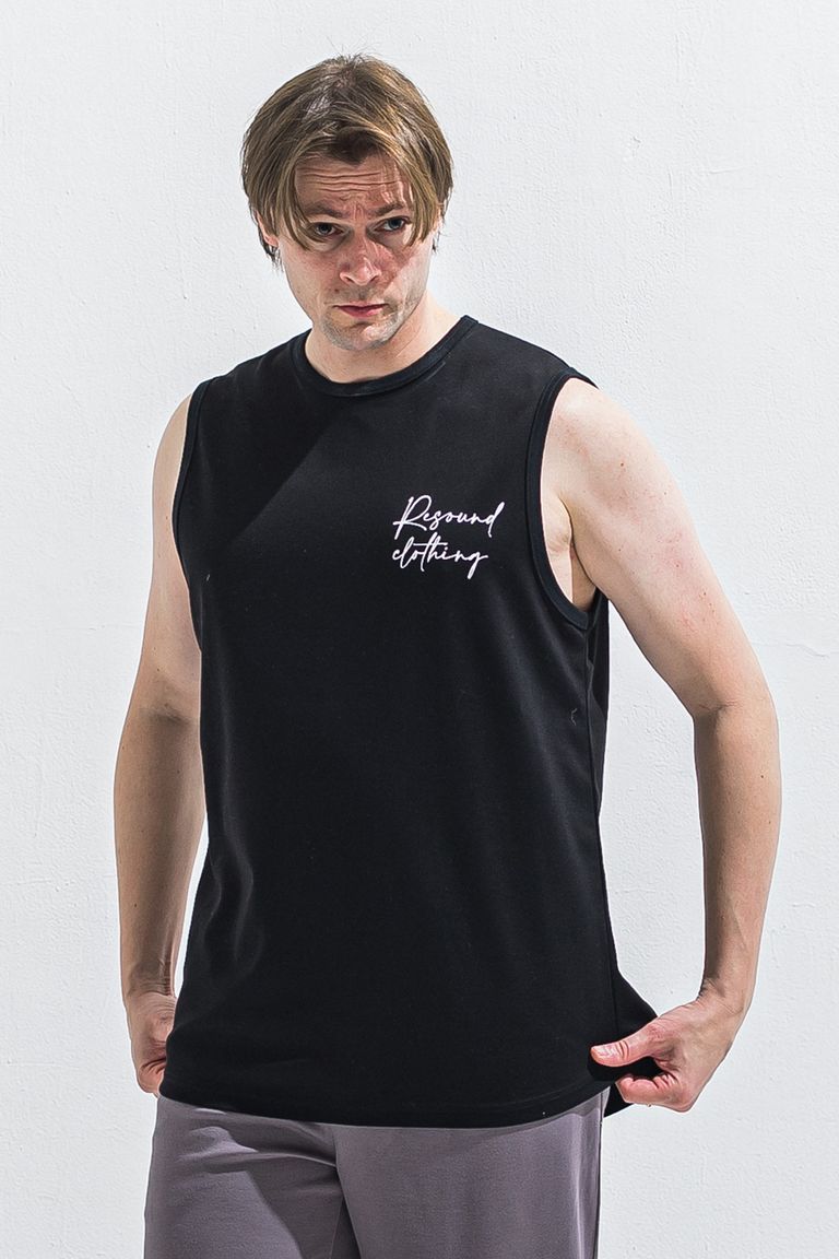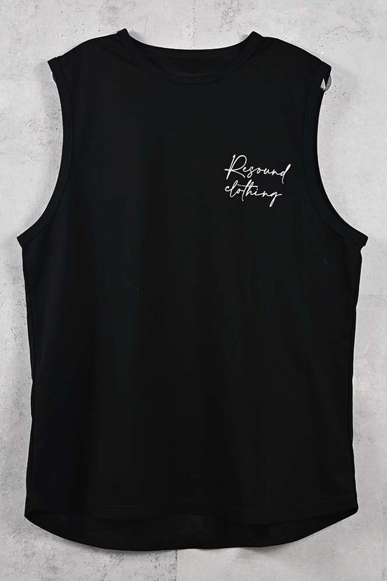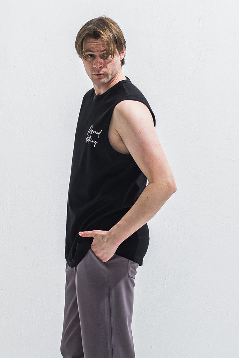 OVER NO SLEEVE / カリグラフィーロゴ オーバーサイズ ノースリーブ (ブラック) (6月上旬入荷予定) ※オーダー締切:2月15日(日)18時