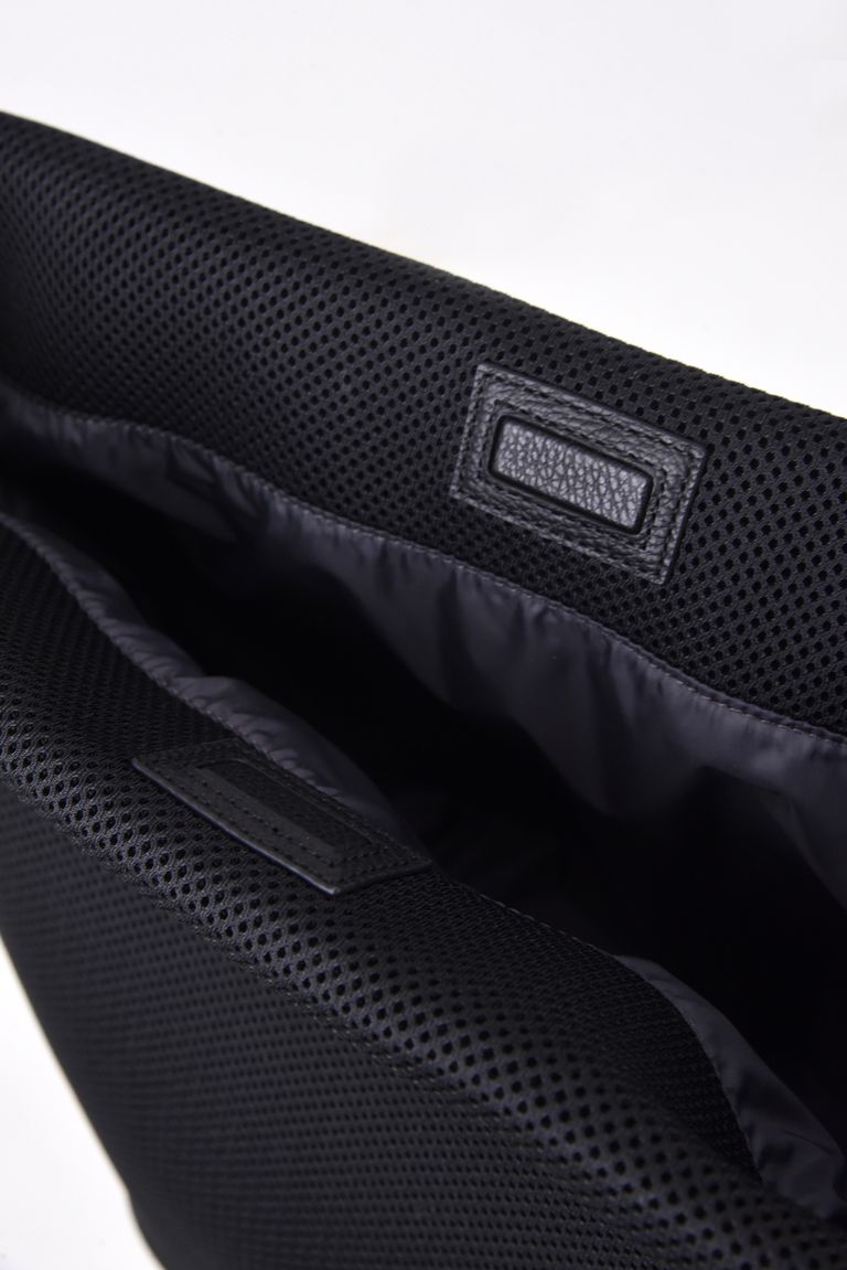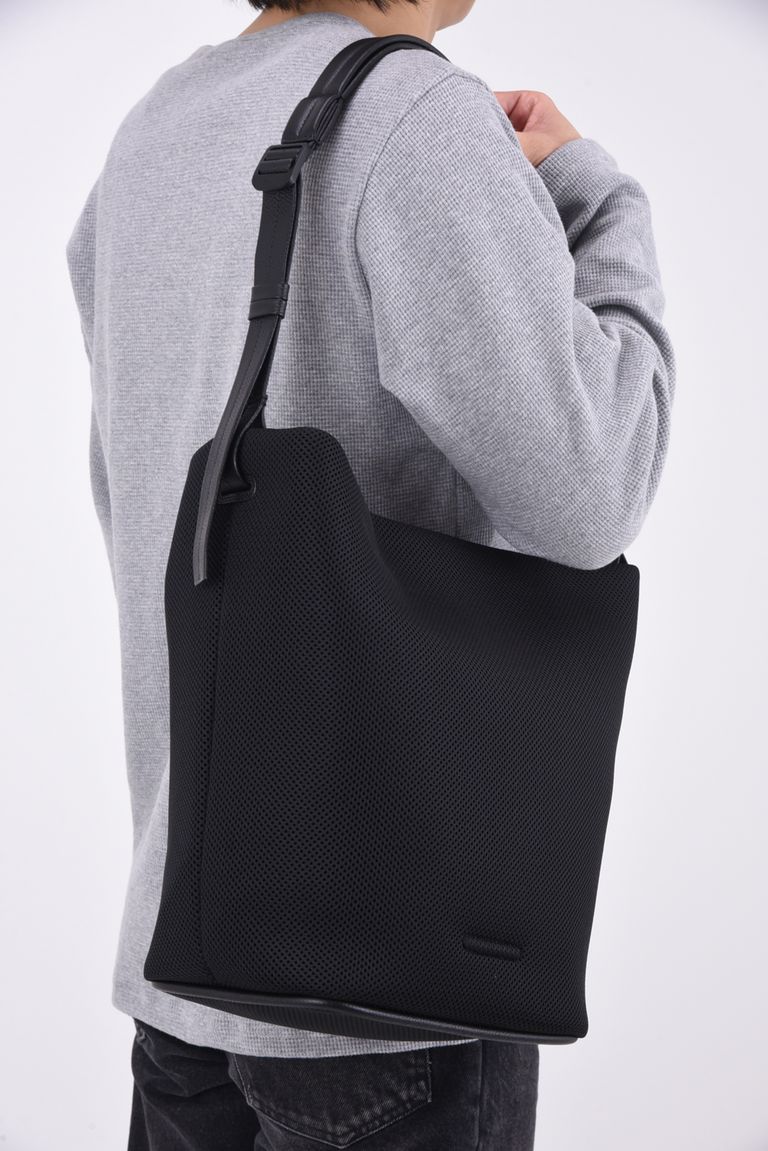 ESSENTIAL DOUBLE RUSSELL HOBO MIDIUM / メッシュ素材 レザーストラップ ショルダートートバッグ (ブラック)