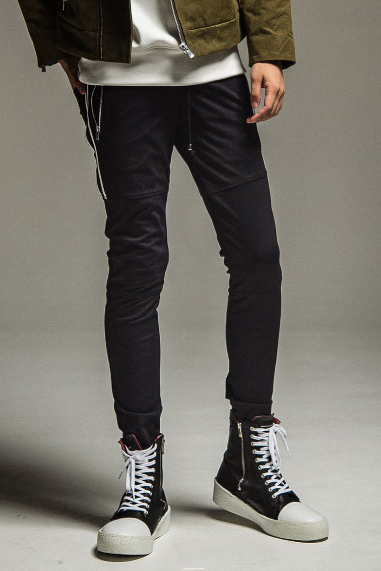 JOHNSON LINE HEAT PT / 【定番商品】 裏ボアフリース ハイブリットジャージー ラインパンツ ブラック / ホワイト