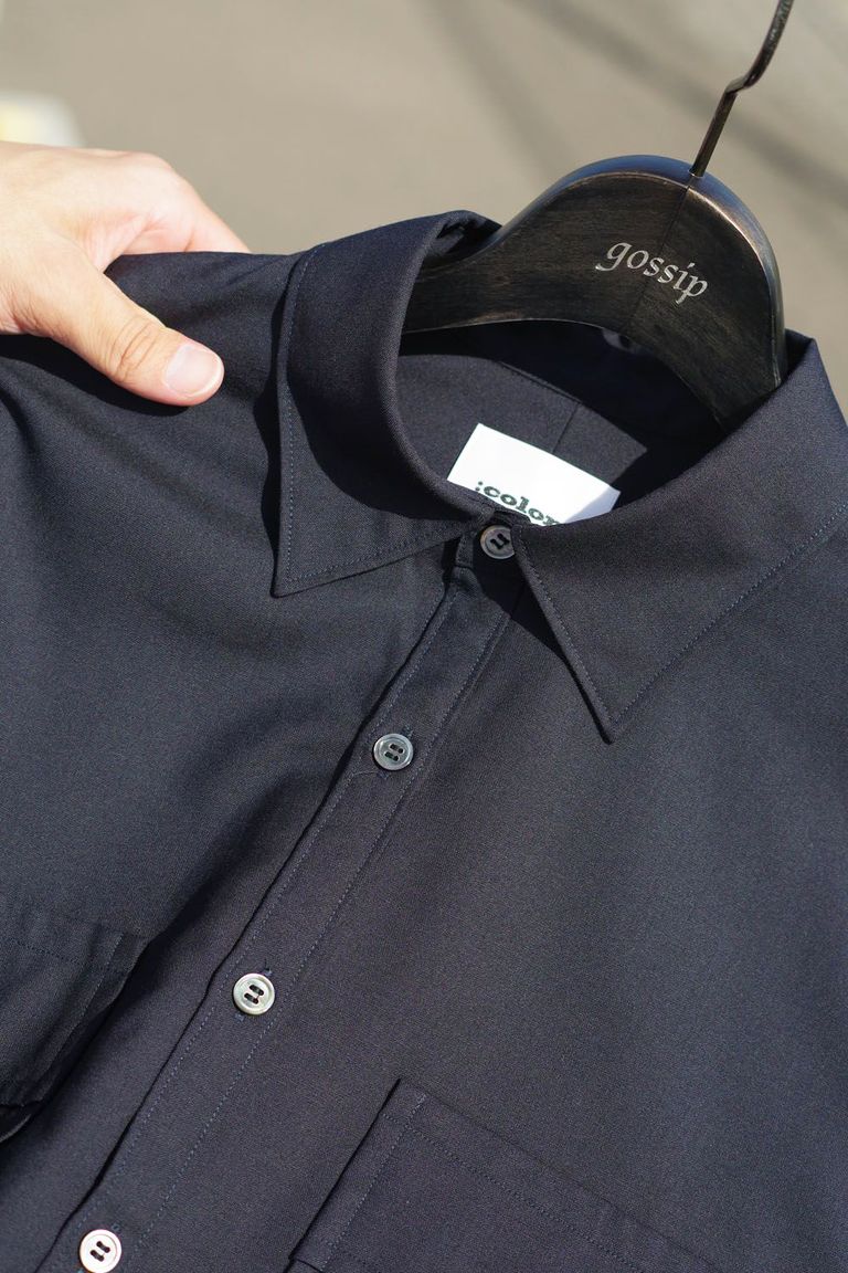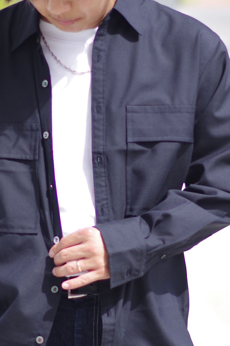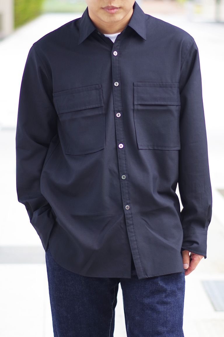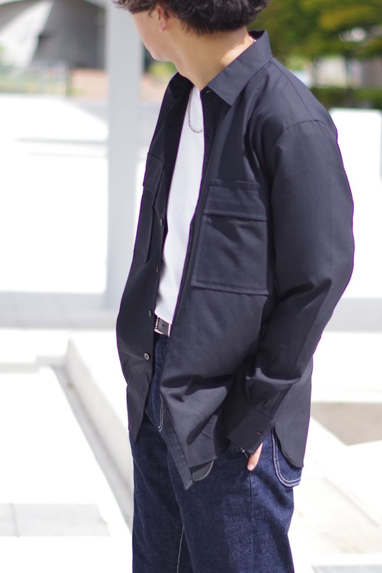 W POCKET SHIRT WOOL TROPICAL / ウォッシャブルウール ダブルポケットシャツ ネイビー