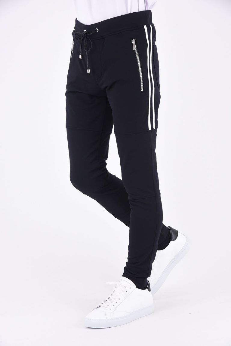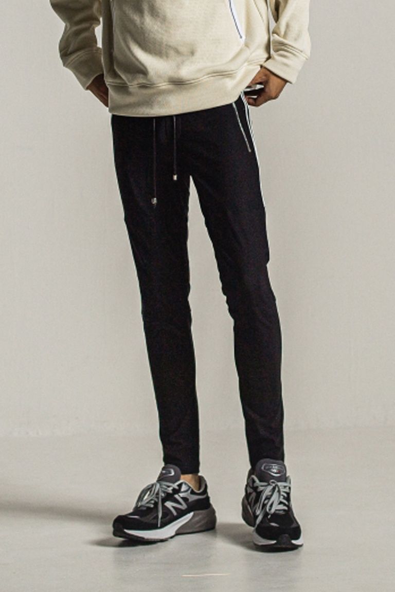 JOHNSON LINE HEAT PT / 【定番商品】 裏ボアフリース ハイブリットジャージー ラインパンツ ブラック/ホワイト