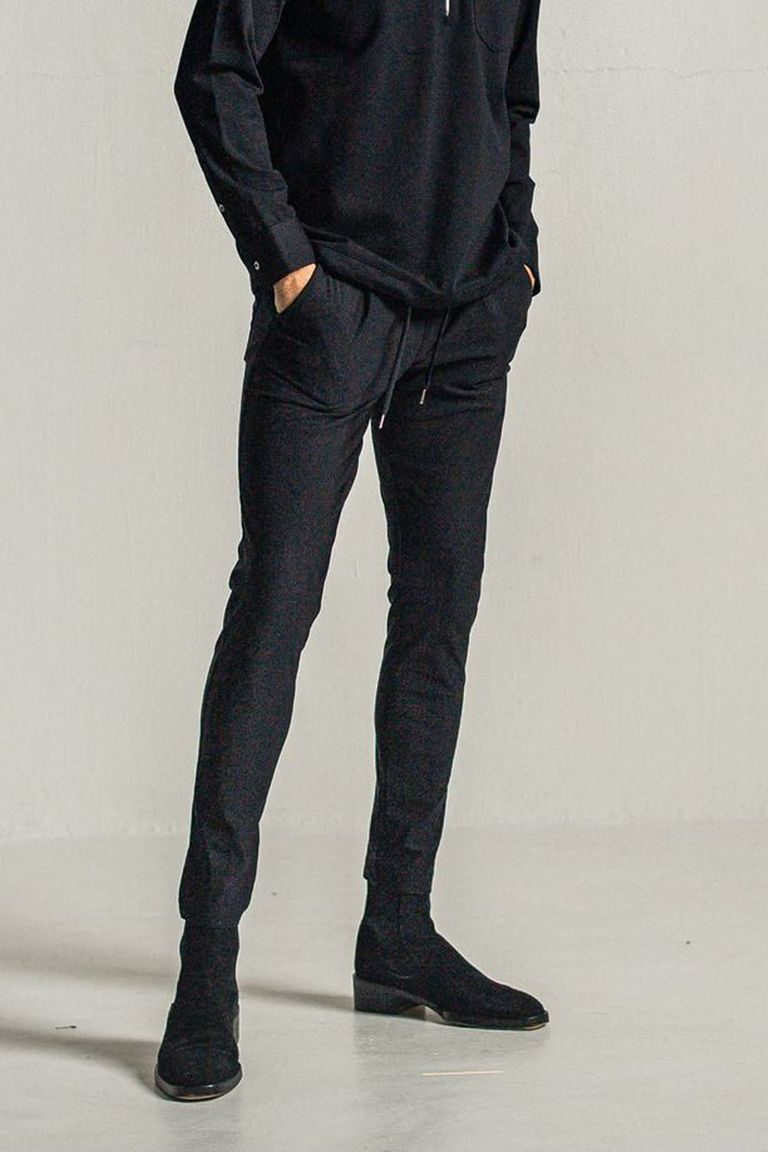 CHRIS EASY HEAT TUCK PANTS / ナイロンストレッチ 裏起毛 スラックスイージータックパンツ ブラック